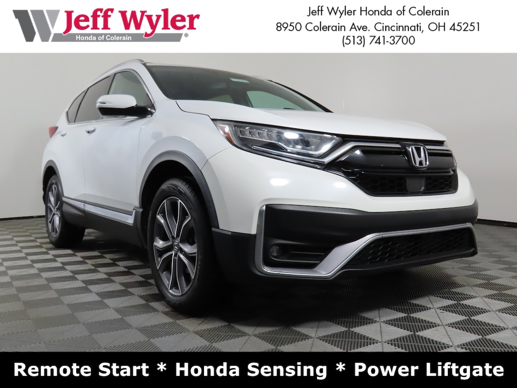 Jeff Wyler Honda of Colerain is proud to offer this wonderful 2020 Honda CR-V Touring in Platinum White Pearl. Well equipped with: 4-Wheel Disc Brakes, 5.64 Axle Ratio, 9 Speakers, ABS brakes, Adaptive Cruise Control: Adaptive Cruise Control (ACC) with Low-Speed Follow, Air Conditioning, Alloy wheels, AM/FM radio: SiriusXM, Apple CarPlay/Android Auto, Auto High-beam Headlights, Auto-dimming Rear-View mirror, Automatic temperature control, Blind Spot Information (BSI) System warning, Brake assist, Bumpers: body-color, Compass, Delay-off headlights, Driver door bin, Driver vanity mirror, Dual front impact airbags, Dual front side impact airbags, Electronic Stability Control, Exterior Parking Camera Rear, Forward collision: Collision Mitigation Braking System (CMBS) + FCW mitigation, Four wheel independent suspension, Front anti-roll bar, Front Bucket Seats, Front Center Armrest, Front dual zone A/C, Front fog lights, Front reading lights, Garage door transmitter: HomeLink, Heated door mirrors, Heated Front Bucket Seats, Heated front seats, Heated steering wheel, Illuminated entry, Leather Seat Trim, Leather Shift Knob, Low tire pressure warning, Memory seat, Navigation system: Honda Satellite-Linked Navigation System, Occupant sensing airbag, Outside temperature display, Overhead airbag, Overhead console, Panic alarm, Passenger door bin, Passenger vanity mirror, Power door mirrors, Power driver seat, Power Liftgate, Power moonroof, Power passenger seat, Power steering, Power windows, Radio data system, Radio: 330-Watt AM/FM/HD/SiriusXM Prem Audio System, Rain sensing wipers, Rear anti-roll bar, Rear seat center armrest, Rear window defroster, Rear window wiper, Remote keyless entry, Roof rack: rails only, Security system, Speed control, Speed-sensing steering, Speed-Sensitive Wipers, Split folding rear seat, Spoiler, Steering wheel mounted audio controls, Tachometer, Telescoping steering wheel, Tilt steering wheel, Traction control, Trip computer, Turn signal indicator mirrors, Variably intermittent wipers, and Wheels: 19" Machine-Finished Alloy w/Gray Inserts.