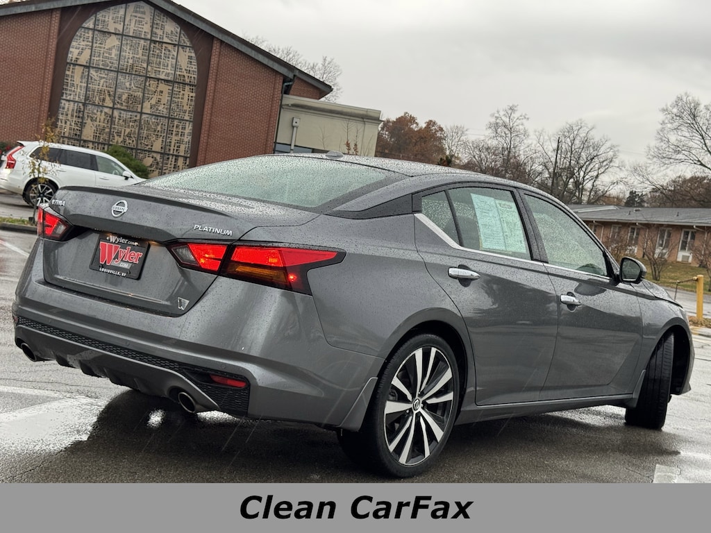 Jeff Wyler Nissan of Louisville is proud to offer this superb-looking 2019 Nissan Altima 2.5 Platinum in Gun Metallic. ** NISSAN CERTIFIED PRE-OWNED **, ** ONE-OWNER CARFAX **, ** CLEAN CARFAX REPORT **, ** BLUETOOTH **, ** NAVIGATION **, ** BACKUP CAMERA **, ** PUSH-BUTTON START **, ** EXCELLENT SERVICE HISTORY **, and ** HOME DELIVERY OPTIONS! ** CVT with Xtronic, 19" Alloy Wheels, 4-Wheel Disc Brakes, 9 Speakers, ABS brakes, Air Conditioning, Alloy wheels, AM/FM radio: SiriusXM, Auto High-beam Headlights, Auto-dimming Rear-View mirror, Automatic temperature control, Blind Spot Warning, Body-Colored Splash Guards, Brake assist, Bumpers: body-color, Compass, Delay-off headlights, Driver door bin, Driver vanity mirror, Dual front impact airbags, Dual front side impact airbags, Electronic Stability Control, Emergency communication system: NissanConnect Services, Four wheel independent suspension, Front anti-roll bar, Front Bucket Seats, Front Center Armrest w/Storage, Front dual zone A/C, Front fog lights, Front reading lights, Fully automatic headlights, Garage door transmitter: HomeLink, Heated door mirrors, Heated Front Bucket Seats, Heated front seats, Heated steering wheel, Illuminated entry, Knee airbag, Leather Shift Knob, Leather-Appointed Seat Trim, Low tire pressure warning, Memory seat, Navigation System, NissanConnect featuring Apple CarPlay and Android Auto, Occupant sensing airbag, Outside temperature display, Overhead airbag, Overhead console, Panic alarm, Passenger door bin, Passenger vanity mirror, Power door mirrors, Power driver seat, Power passenger seat, Power steering, Power windows, Radio data system, Radio: AM/FM/HD w/Bose Premium Sound System, Rear anti-roll bar, Rear reading lights, Rear seat center armrest, Rear side impact airbag, Rear window defroster, Remote keyless entry, Security system, Speed control, Speed-sensing steering, Split folding rear seat, Steering wheel mounted audio controls, Tachometer, Telescoping steering wheel, Tilt steering wheel, Traction control, Trip computer, Turn signal indicator mirrors, and Variably intermittent wipers Our PRE-OWNED vehicles are put through a rigorous 167- POINT QUALITY ASSURANCE INSPECTION along with an average amount of over $1,400.00 SPENT to recondition each vehicle so we can be sure to deliver you the highest quality vehicle like you deserve! ***ONLINE PRICE DOES NOT INCLUDE WYLER FAMILY FIRST PACKAGE*** Stop by 4136 Shelbyville Road to see for yourself, or give us a call @ 502-897-3151 to schedule your test drive! ** NISSAN CERTIFIED PRE-OWNED **, ** ONE-OWNER CARFAX **, ** CLEAN CARFAX REPORT **, ** BLUETOOTH **, ** NAVIGATION **, ** BACKUP CAMERA **, ** PUSH-BUTTON START **, ** EXCELLENT SERVICE HISTORY **, CVT with Xtronic.