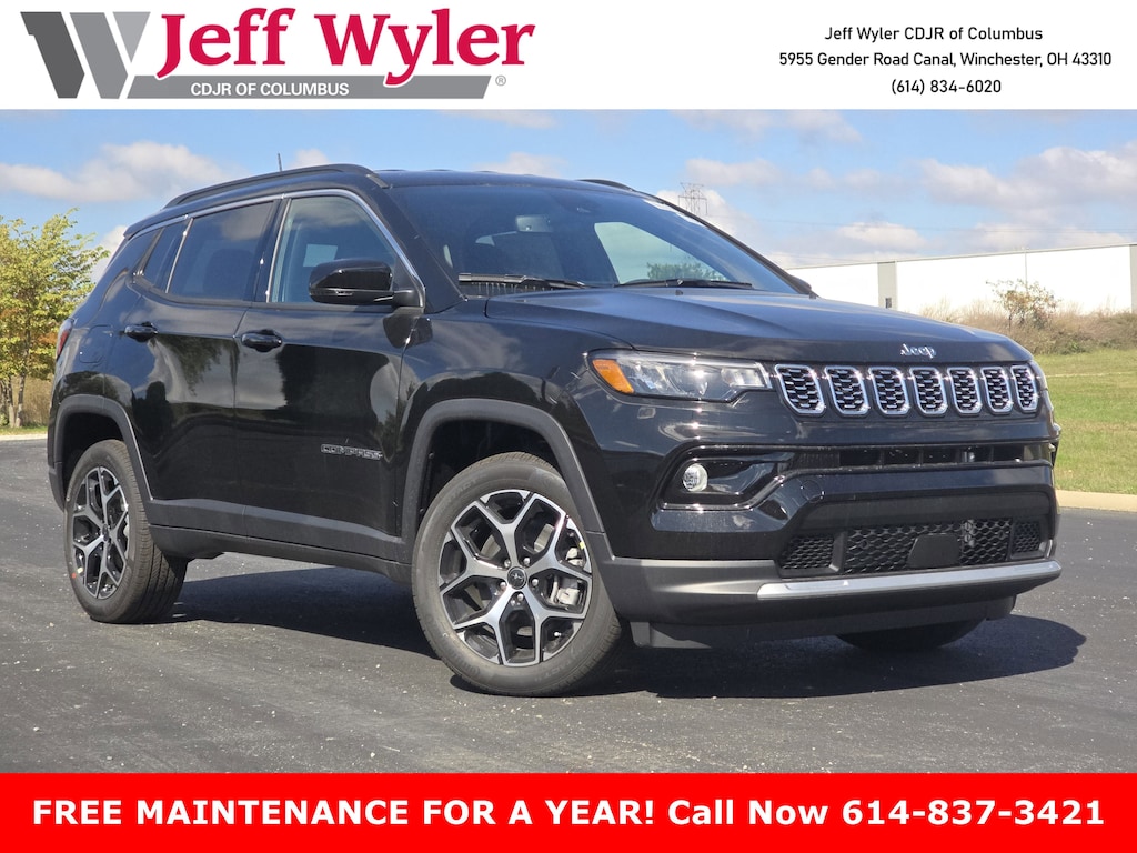 Jeff Wyler Columbus Auto Mall is honored to offer this charming 2026 Jeep Compass Limited in Pxj. Well equipped with: 4WD, 3.73 Final Drive Ratio, 4-Wheel Disc Brakes, 6 Speakers, ABS brakes, Active Cruise Control, Air Conditioning, Alloy wheels, AM/FM radio: SiriusXM with 360L, Anti-whiplash front head restraints, Apple CarPlay/Android Auto, Auto High-beam Headlights, Auto-dimming Rear-View mirror, Automatic temperature control, Brake assist, Bumpers: body-colour, Compass, Delay-off headlights, Driver door bin, Driver vanity mirror, Dual front impact airbags, Dual front side impact airbags, Electronic Stability Control, Emergency communication system: SiriusXM Guardian, Four wheel independent suspension, Front anti-roll bar, Front Bucket Seats, Front dual zone A/C, Front fog lights, Front reading lights, Fully automatic headlights, Heated door mirrors, Heated front seats, Heated steering wheel, Illuminated entry, Knee airbag, Leather Shift Knob, Leather steering wheel, Leatherette Seats, Low tire pressure warning, Occupant sensing airbag, Outside temperature display, Overhead airbag, Overhead console, Panic alarm, ParkView Rear Back-Up Camera, Passenger door bin, Passenger vanity mirror, Power door mirrors, Power driver seat, Power Liftgate, Power steering, Power windows, Premium audio system: UConnect 5, Radio: Uconnect 5 w/10.1" Display, Rain sensing wipers, Rear anti-roll bar, Rear window defroster, Rear window wiper, Remote keyless entry, Security system, Speed control, Split folding rear seat, Spoiler, Steering wheel mounted audio controls, Tachometer, Telescoping steering wheel, Tilt steering wheel, Traction control, Turn signal indicator mirrors, Variably intermittent wipers, and Wheels: 18" x 7" Painted Diamond Cut Aluminum. 23/31 City/Highway MPGWyler Family First Package Includes: NanoCure Appearance Protection: Exterior & Interior Chemical Sealant Applied to Protect Against Environmental Hazards (7 Year Warranty Coverage). Pulse- Rear End Collision Avoidance System Theft Deterrent Strategy gives you 5 Years of Coverage against vehicle theft, Offering up to a $5,000 benefit.
