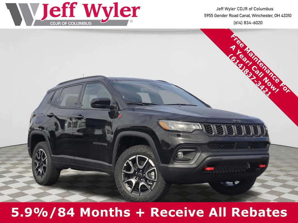 Adventure Awaits in This Brand-New 2026 Jeep Compass Trailhawk!Experience ultimate off-road capability with part-time 4WD and Trailhawk's rugged design in stunning Diamond Black Crystal Pearlcoat. This SUV combines adventure-ready performance with everyday comfort and cutting-edge technology. Safety First: Advanced safety suite includes Full Speed Forward Collision Warning, Pedestrian Emergency Braking, Blind Spot Detection, and Active Lane Management for confident driving anywhere. Premium Features: Heated leather-trimmed seats, heated steering wheel, 10.1" touchscreen with Bluetooth connectivity, power liftgate, and adaptive cruise control with stop & go functionality. Exceptional Value: Take advantage of $1,000 in National Bonus Cash incentives, plus our exclusive Wyler Family First Package including 7-year NanoCure protection and 5-year theft coverage up to $5,000. Brand New Confidence: Factory warranty coverage and certified Jeep quality ensure years of reliable adventure. Why Choose Jeff Wyler Columbus: Over 45 years of trusted service, competitive pricing, and Ohio's highest-rated customer satisfaction. Our dedicated team provides personalized service that competitors can't match.Ready to explore? This Trailhawk is equipped for any journey while keeping you connected and comfortable. Price does not include Tax, Title, License and Documentary Fee$1000 - 2026 National Retail Bonus Cash . Exp. 02/02/2026 $1500 - 2026 National Stellantis Loyalty Retail Bonus Cash . Exp. 02/02/2026