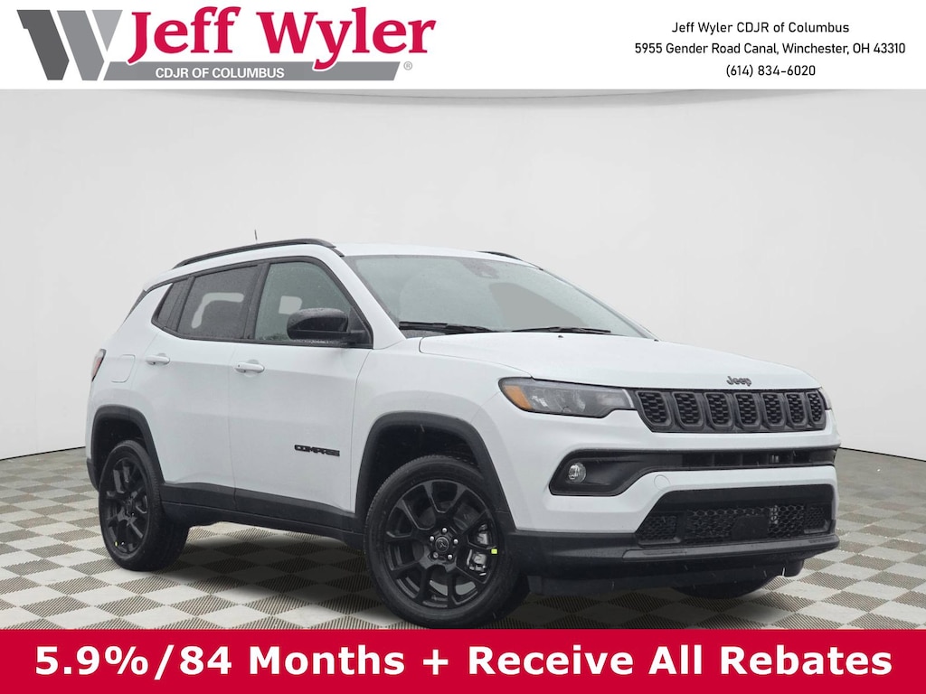 Experience the All-New 2026 Jeep Compass Latitude Altitude in Bright White Clearcoat!This brand-new SUV combines rugged capability with modern luxury. The turbocharged 2.0L engine delivers 200HP while the automatic full-time 4WD system ensures confident handling in any condition. Advanced Safety You Can Trust: Features comprehensive protection with Blind Spot Detection, Full Speed Forward Collision Warning Plus, Pedestrian/Cyclist Emergency Braking, and Active Lane Management to keep you and your family secure. Premium Comfort & Tech: Enjoy heated front seats and steering wheel, 10.1" touchscreen with wireless device mirroring, 4G LTE Wi-Fi hotspot, and smart key with push-button start. The Altitude package adds distinctive 18" gloss black wheels and premium styling touches. Exceptional Value: Take advantage of the 2026 National Retail Bonus Cash and our competitive pricing on this well-equipped SUV. Why Choose Jeff Wyler Columbus Auto Mall? With over 45 years serving Central Ohio, we're your trusted Chrysler, Dodge, Jeep, RAM dealership. Our commitment to personalized service and competitive pricing has earned us the highest customer satisfaction ratings in the region. Price does not include Tax, Title, License and Documentary Fee$1000 - 2026 National Retail Bonus Cash . Exp. 04/30/2026 $1000 - 2026 National Stellantis Loyalty Bonus Cash . Exp. 04/30/2026 $500 - 2026 National 2026 Military Bonus Cash . Exp. 01/04/2027 $750 - 2026 Great Lakes BC Bonus Cash . Exp. 04/30/2026