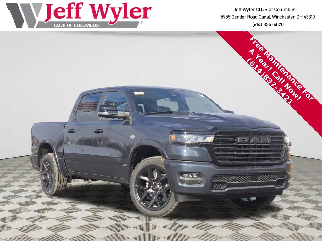 Jeff Wyler Columbus Auto Mall is very proud to offer this outstanding-looking 2026 Ram 1500 Laramie in Forged Blue Metallic. Well equipped with: Laramie Level 2 Equipment Group (14.4" Touchscreen Display, 4G LTE Wi-Fi Hot Spot, Cluster 12" TFT Color Display, Connected Travel and Traffic Services, Connectivity - US/Canada, Front Passenger Interactive Display, GPS Navigation, Harman/Kardon 19 Speaker Premium Sound, Integrated Center Stack Radio, Integrated Voice Command with Bluetooth, Power Tailgate, Radio: Uconnect 5 Nav with 14.4" Display, Rain Sensitive Windshield Wipers, SiriusXM Radio Service, SiriusXM with 360L, and USB Host Flip), Night Edition (Accent Color Door Handles, Accent Color Premium Power Mirrors, Accent Color Tailgate Handle, Anti-Spin Differential Rear Axle, Auto Power-Folding Mirrors, Auto-Dimming Exterior Driver Mirror, Black Exterior Truck Badging, Black Headlamp Bezels, Black Interior Accents, Black Painted Exterior Mirrors Caps, Black Tail Lamp Bezels, Body Color Front Bumper, Body Color Rear Bumper with Step Pads, Convex Wide-Angle Exterior Mirror Insert, Dual Exhaust with Black Tips, Exterior Mirrors Approach Lamps, Exterior Mirrors Courtesy Lamps, Exterior Mirrors with Heating Element, Exterior Mirrors with Memory, Exterior Mirrors with Supplemental Signals, Grille Surround 3 Black Texture 2 Black, Pirelli Brand Tires, Proximity Approach/Departure Lamps, RAM Grille Badge - Black, Sport Performance Hood, and Wheels: 22" x 9" Forged Aluminum), Quick Order Package 27H Laramie, 10 Speakers, 33 Gallon Fuel Tank, 4-Wheel Disc Brakes, ABS brakes, Active Noise Control System, Air Conditioning, Alloy wheels, AM/FM radio: SiriusXM with 360L, Apple CarPlay/Android Auto, Audio memory, Auto High-beam Headlights, Auto-dimming door mirrors, Auto-dimming Rear-View mirror, Automatic temperature control, Brake assist, Bumpers: chrome, Chrome Exterior Mirrors, Compass, Delay-off headlights, Dome Dual LED Reading Lamp, Driver door bin, Driver vanity mirror, Dual front impact airbags, Dual front side impact airbags, Dual-Pane Panoramic Sunroof, Electronic Stability Control, Front anti-roll bar, Front Bucket Seats, Front Center Armrest w/Storage, Front dual zone A/C, Front fog lights, Front License Plate Bracket, Front reading lights, Front wheel independent suspension, Fully automatic headlights, Garage door transmitter, Heated door mirrors, Heated front seats, Heated rear seats, Heated steering wheel, Illuminated entry, Leather steering wheel, Leather Trimmed Bucket Seats, LED Dome/Reading Lamp, Low tire pressure warning, Memory seat, MOPAR Front and Rear Rubber Floor Mats, MyFlexCare Service Plan, Navigation System, Occupant sensing airbag, Off-Road Information Pages, Outside temperature display, Overhead airbag, Overhead console, Panic alarm, ParkView Rear Back-Up Camera, Passenger door bin, Passenger vanity mirror, Power door mirrors, Power driver seat, Power passenger seat, Power steering, Power windows, Radio data system, Radio: Uconnect 5 Navigation with 12.0" Display, RAM Grille Badge - Chrome, Rear anti-roll bar, Rear reading lights, Rear seat center armrest, Rear step bumper, Remote keyless entry, Security system, Speed control, Split folding rear seat, Steering wheel mounted audio controls, Tachometer, Telescoping steering wheel, Tilt steering wheel, Traction control, Trip computer, Turn signal indicator mirrors, Variably intermittent wipers, Ventilated front seats, Voltmeter, and Wheels: 20" x 9" Premium Paint/Polish.Wyler Family First Package Includes: NanoCure Appearance Protection: Exterior & Interior Chemical Sealant Applied to Protect Against Environmental Hazards (7 Year Warranty Coverage). Pulse- Rear End Collision Avoidance System Theft Deterrent Strateg Price does not include Tax, Title, License and Documentary Fee$2000 - 2026 Midwest BC Conquest Bonus Cash . Exp. 01/05/2026 $3500 - 2026 National Retail Consumer Cash . Exp. 01/05/2026 $500 - 2026 National 2026 Military Bonus Cash . Exp. 01/05/2026