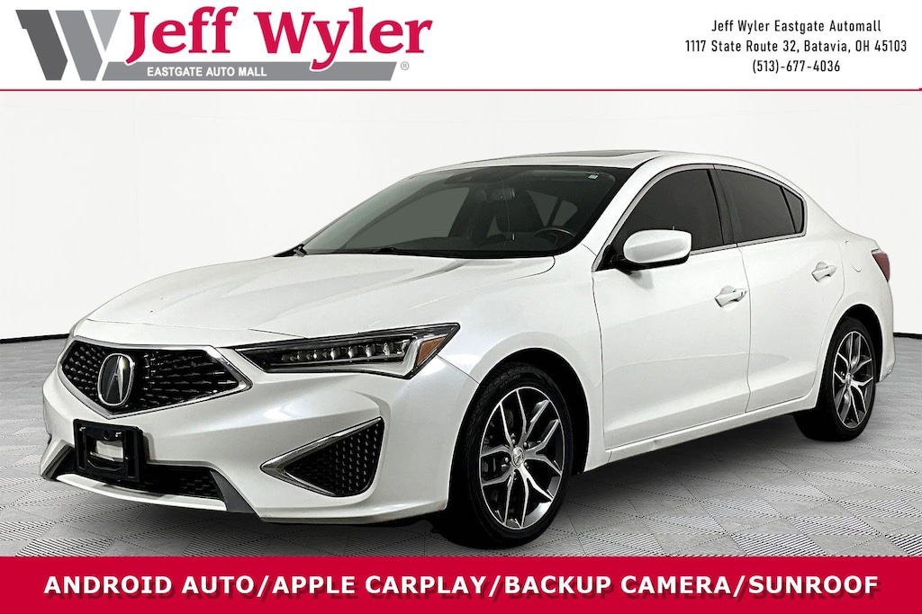 Jeff Wyler Eastgate Auto Mall is delighted to offer this wonderful-looking 2020 Acura ILX Premium Package in White. Well equipped with: 4-Wheel Disc Brakes, ABS brakes, Air Conditioning, Alloy wheels, AM/FM radio: SiriusXM, Apple CarPlay/Android Auto, Auto-dimming Rear-View mirror, Automatic temperature control, Brake assist, Bumpers: body-color, CD player, Compass, Delay-off headlights, Driver door bin, Driver vanity mirror, Dual front impact airbags, Dual front side impact airbags, Electronic Stability Control, Exterior Parking Camera Rear, Four wheel independent suspension, Front anti-roll bar, Front Bucket Seats, Front Center Armrest, Front dual zone A/C, Front reading lights, Fully automatic headlights, Garage door transmitter: HomeLink, Heated door mirrors, Heated front seats, Heated Front Sport Seats, Illuminated entry, Lane departure: Lane Keeping Assist System (LKAS) active, Leather Shift Knob, Leather steering wheel, Low tire pressure warning, Memory seat, Occupant sensing airbag, Outside temperature display, Overhead airbag, Overhead console, Panic alarm, Passenger door bin, Passenger vanity mirror, Perforated Milano Premium Leather Seat Trim, Power door mirrors, Power driver seat, Power moonroof, Power passenger seat, Power steering, Power windows, Radio data system, Rear anti-roll bar, Rear seat center armrest, Rear window defroster, Remote keyless entry, Security system, Speed control, Speed-sensing steering, Speed-Sensitive Wipers, Steering wheel mounted audio controls, Tachometer, Telescoping steering wheel, Tilt steering wheel, Traction control, Trip computer, Variably intermittent wipers, and Wheels: 17" x 7.0" Pewter Gray Y-Spoke. Clean CARFAX. Awards: * JD Power Initial Quality Study (IQS) Ask about available certifications. Used vehicles 10 years of age or newer with less than 100,000 miles are eligible for the Wyler Assurance Program, but eligible vehicles must pass our reconditioning process and multi-point inspection. Provided the vehicle passes inspection, vehicles will be eligible for the 6 month/6,000 mile limited warranty. The 6 month/6,000 mile limited warranty is NOT available on AS-IS vehicles, wholesale vehicles, lease buyback/pass-thru vehicles or un-inspected vehicles. Note that this program can also apply to vehicles where the remaining factory coverage is less than 6 months or 6,000 miles. Please check the Federal Trade Commission (FTC) Buyers guide on the vehicle for full details as to whether or not warranty coverage may apply. Contact Dealer for additional details. The Wyler Assurance 6 month/6,000 Mile limited warranty ends 6 months from the date of the Retail Purchase Agreement (BUYERS ORDER) or when the vehicle's odometer registers 6,000 additional miles to the mileage listed on the BUYERS ORDER, whichever comes first. Your Deductible - The warranty holder on your contract pays the first $100 of each covered repair.