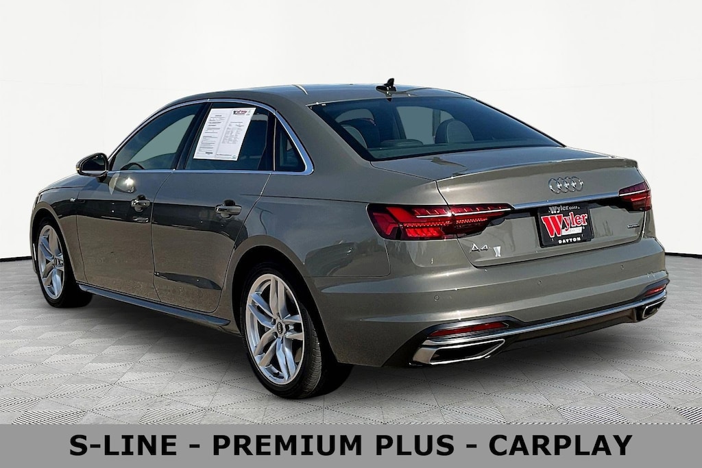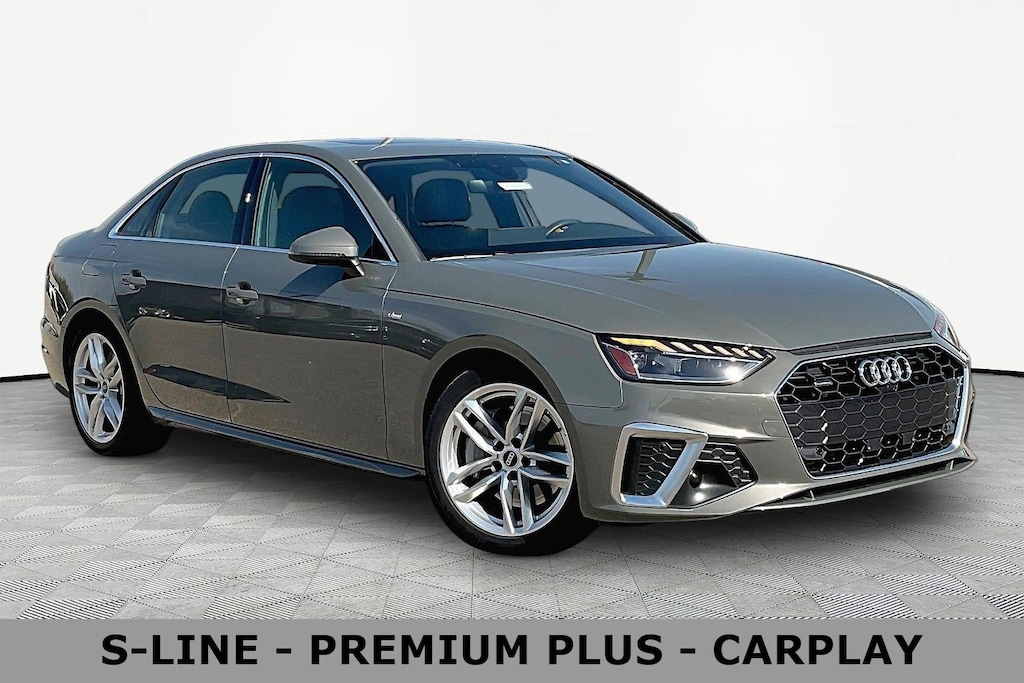 Jeff Wyler Acura of Dayton is pumped up to offer this beautiful 2023 Audi A4 45 S line Premium Plus in Gray Metallic. Convenience Package (Adaptive Cruise Control, Alarm System w/Motion Sensor, Audi Advanced Key, Audi Side Assist w/Pre Sense Rear, Heated Steering Wheel, Memory for Driver's Seat, Parking System Plus, and SiriusXM w/360L), Navigation Package (Audi Connect PLUS and MMI Navigation Plus), Premium Plus Package (2 Rear USB Charge Ports, Audi Active Lane Assist, Audi Phone Box, Audi Virtual Cockpit Plus, Bang & Olufsen Sound System w/3D Sound, Hands-On Detection Steering Wheel, Leatherette Covered Center Console & Door Armrests, Power Folding Exterior Mirrors, Top View Camera System, and Traffic Jam Assist), S-Line Interior Package (Brushed Aluminum Inlays, Leather/Dinamica Seating Surfaces, and Stainless Steel Pedal Caps), 7-Speed Automatic S tronic, quattro, Black Leather, 10 Speakers, 4-Wheel Disc Brakes, ABS brakes, Air Conditioning, Alloy wheels, AM/FM radio, Anti-whiplash front head restraints, Audi Beam-Rings, Audi Guard Protection Kit, Audi smartphone interface (Apple CarPlay/Android Auto), Auto High-beam Headlights, Auto-dimming Rear-View mirror, Automatic temperature control, Brake assist, Bumpers: body-color, Compass, Delay-off headlights, Driver door bin, Driver vanity mirror, Dual front impact airbags, Dual front side impact airbags, Electronic Stability Control, Emergency communication system: Audi connect CARE, Exterior Parking Camera Rear, Four wheel independent suspension, Front anti-roll bar, Front Bucket Seats, Front Center Armrest, Front dual zone A/C, Front fog lights, Front reading lights, Garage door transmitter: HomeLink, Genuine wood dashboard insert, Genuine wood door panel insert, Heated door mirrors, Heated front seats, Heated Front Sport Bucket Seats, Illuminated entry, Integrated Toll Module Delete (DISC), Knee airbag, Leather Seating Surfaces, Leather Shift Knob, Leather steering wheel, Low tire pressure warning, Occupant sensing airbag, Outside temperature display, Overhead airbag, Overhead console, Panic alarm, Passenger door bin, Passenger vanity mirror, Power door mirrors, Power driver seat, Power moonroof, Power passenger seat, Power steering, Power windows, Radio data system, Radio: Audi Sound System, Rain sensing wipers, Rear air conditioning, Rear anti-roll bar, Rear reading lights, Rear seat center armrest, Rear window defroster, Remote keyless entry, Speed control, Speed-sensing steering, Speed-Sensitive Wipers, Split folding rear seat, Steering wheel mounted audio controls, Tachometer, Telescoping steering wheel, Tilt steering wheel, Traction control, Trip computer, Turn signal indicator mirrors, Variably intermittent wipers, and Wheels: 18" 5-Double-Spoke Design Our PRE-OWNED vehicles are put through a rigorous 167- POINT QUALITY ASSURANCE INSPECTION along with an average amount of over $1,400.00 SPENT to recondition each vehicle so we can be sure to deliver you the highest quality vehicle like you deserve! ***ONLINE PRICE DOES NOT INCLUDE WYLER FAMILY FIRST PACKAGE*** Clean CARFAX.