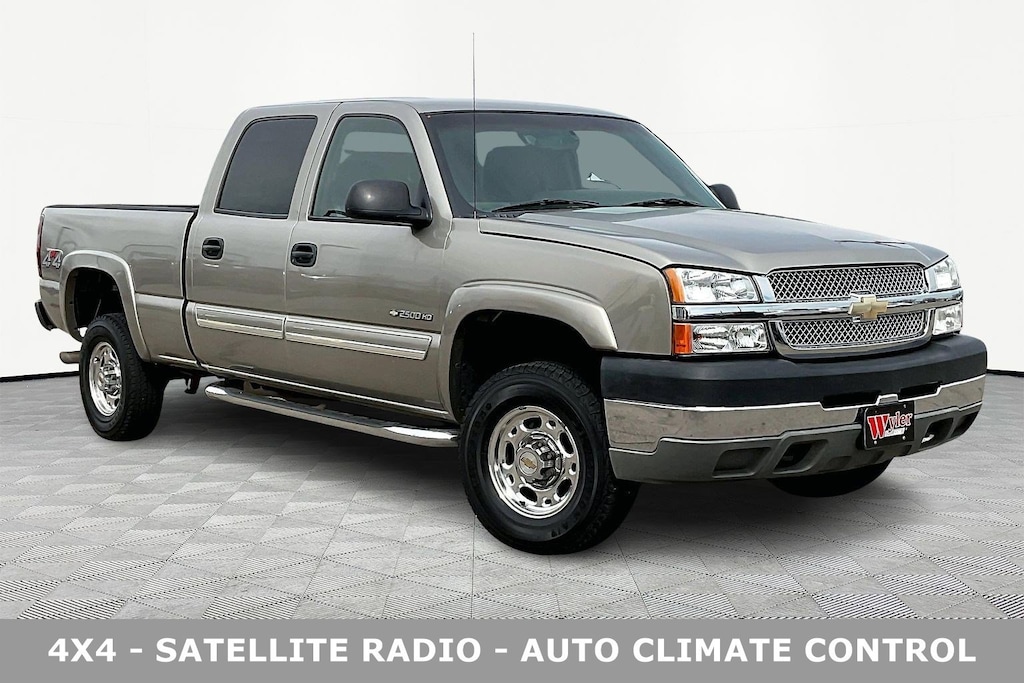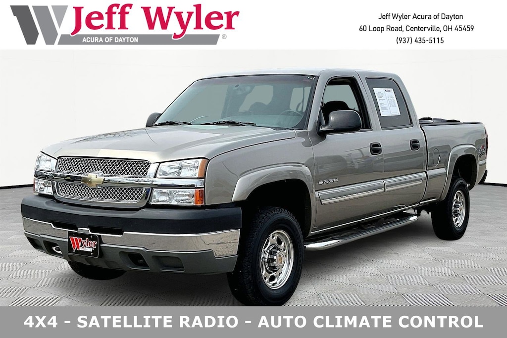 Jeff Wyler Acura of Dayton is honored to offer this hard-working 2003 Chevrolet Silverado 2500HD LS in Light Pewter Metallic. Heavy-Duty Handling/Trailering Suspension Package, Heavy-Duty Trailering Equipment, 4-Speed Automatic HD with Overdrive, 4WD, 4-Wheel Disc Brakes, 4.10 Rear Axle Ratio, ABS brakes, Air Conditioning, AM/FM radio, Bumpers: chrome, Color-Keyed Carpeted Floor Covering, Driver door bin, Dual front impact airbags, Electric Rear-Window Defogger, Electronic Cruise Control w/Set & Resume Speed, Front anti-roll bar, Front dual zone A/C, Front wheel independent suspension, Fully automatic headlights, Heavy-Duty Rear Locking Differential, Passenger door bin, Passenger vanity mirror, Power Programmable Door Locks, Power steering, Rear step bumper, Solar-Ray Deep Tinted Glass, Split folding rear seat, Tachometer, Tilt steering wheel, Variably intermittent wipers, and Voltmeter Our PRE-OWNED vehicles are put through a rigorous 167- POINT QUALITY ASSURANCE INSPECTION along with an average amount of over $1,400.00 SPENT to recondition each vehicle so we can be sure to deliver you the highest quality vehicle like you deserve! ***ONLINE PRICE DOES NOT INCLUDE WYLER FAMILY FIRST PACKAGE*** Clean CARFAX.