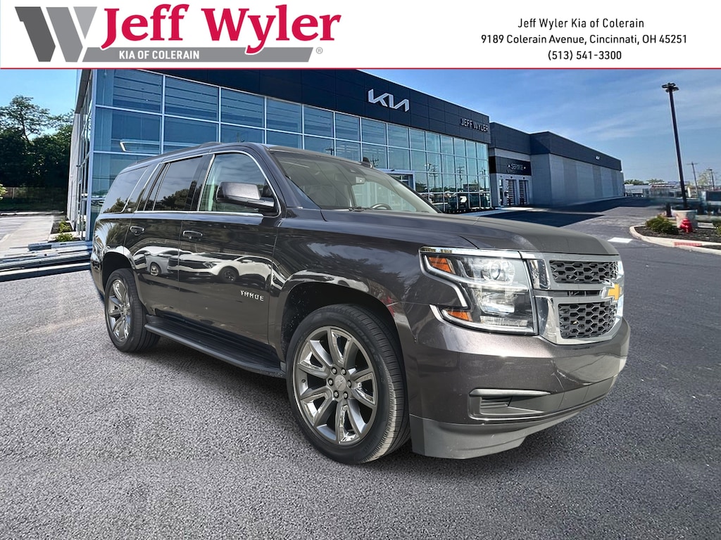 Jeff Wyler Kia of Colerain is proud to offer this good-looking 2016 Chevrolet Tahoe LT in Tungsten Metallic. License Plate Front Mounting Package, Max Trailering Package (2-Speed Active Electronic AutoTrac Transfer Case and Integrated Trailer Brake Controller), Preferred Equipment Group 1LT (1st & 2nd Row Color-Keyed Carpeted Floor Mats, 2nd Row 60/40 Split-Folding Manual Bench, 3rd Row Manual 60/40 Split-Folding Fold Flat Bench, 4-Wheel Antilock Disc Brakes, 5 12-Volt Auxiliary Power Outlets, Auto-Dimming Inside Rear-View Mirror, Black Assist Steps, Bose Premium 9-Speaker System, Color-Keyed Carpeting Floor Covering, Driver Inboard & Front Passenger Airbags, Electronic Cruise Control w/Set & Resume Speed, Enhanced Driver Instrument Information Display, Extended-Range Remote Keyless Entry, Floor Console, Leather-Wrapped Steering Wheel, Memory Settings, OnStar Basic Plan For 5 Years, Power Liftgate, Power-Adjustable Accelerator & Brake Pedals, Rear Park Assist w/Audible Warning, Roof-Mounted Luggage Rack Side Rails, SiriusXM Satellite Radio, and Universal Home Remote), Premium Smooth Ride Suspension Package, Standard Suspension Package, Sun, Entertainment & Destinations Package (Power Sunroof, Radio: Chevrolet MyLink w/Navigation/AM/FM Stereo, Rear Seat Blu-Ray/DVD Entertainment System, and Single-Slot CD/MP3 Player), 18" x 8.5" Aluminum Wheels, 2nd Row Manual Bucket Seats, 3rd row seats: split-bench, 4-Wheel Disc Brakes, 6-Way Power Front Passenger Seat Adjuster, 9 Speakers, ABS brakes, Adjustable pedals, Air Conditioning, All-Weather Floor Mats, Alloy wheels, AM/FM radio: SiriusXM, Apple CarPlay, Auto High-beam Headlights, Auto-dimming Rear-View mirror, Automatic temperature control, Black Roof Rack Cross Rails, Brake assist, Bumpers: body-color, CD player, Compass, Delay-off headlights, Driver door bin, Driver vanity mirror, Dual front impact airbags, Dual front side impact airbags, Electronic Stability Control, Emergency communication system: OnStar, Exterior Parking Camera Rear, Forward Collision Alert Sensor Indicator, Front anti-roll bar, Front Bucket Seats, Front Center Armrest, Front dual zone A/C, Front Heated Reclining Bucket Seats, Front reading lights, Front wheel independent suspension, Fully automatic headlights, Garage door transmitter, Heated door mirrors, Heated front seats, Illuminated entry, IntelliBeam Headlamps, Lane Departure Warning System, Lane Keep Assist, Leather-Appointed Seat Trim, Low tire pressure warning, Memory seat, Occupant sensing airbag, Outside temperature display, Overhead airbag, Overhead console, Panic alarm, Passenger door bin, Passenger vanity mirror, Pedal memory, Power door mirrors, Power driver seat, Power passenger seat, Power steering, Power windows, Premium audio system: Chevrolet MyLink, Radio: Chevrolet MyLink AM/FM Stereo, Rain sensing wipers, Rear air conditioning, Rear anti-roll bar, Rear reading lights, Rear seat center armrest, Rear window defroster, Rear window wiper, Remote keyless entry, Roof rack: rails only, Safety Alert Driver Seat, Security system, Speed control, Speed-sensing steering, Split folding rear seat, Spoiler, Steering wheel mounted audio controls, Tachometer, Telescoping steering wheel, Tilt steering wheel, Traction control, Trip computer, Unauthorized Entry Electrical Theft Deterrent Sys., Variably intermittent wipers, Voltmeter, Wheels: 22" 7-Spoke Silver w/Black Inserts (LPO), and Wheels: 22" x 9" Steel Our PRE-OWNED vehicles are put through a rigorous 167- POINT QUALITY ASSURANCE INSPECTION along with an average amount of over $1,400.00 SPENT to recondition each vehicle so we can be sure to deliver you the highest quality vehicle like you deserve! ***ONLINE PRICE DOES NOT INCLUDE WYLER FAMILY FIRST PACKAGE***