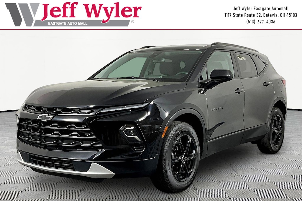 Jeff Wyler Eastgate Auto Mall is excited to offer this attractive-looking 2024 Chevrolet Blazer LT in Black. Well equipped with: Convenience Package (Adaptive Cruise Control, Black Roof-Mounted Side Rails, Enhanced Automatic Emergency Braking, Inside Rear-View Auto-Dimming Mirror, Rear Power Programmable Liftgate, Universal Home Remote, and Wireless Charging), Driver Confidence Package (Lane Change Alert w/Side Blind Zone Alert, Rear Cross Traffic Alert, and Rear Park Assist w/Audible Warning), Floor Liner Package (LPO) (1st & 2nd Row All-Weather Floor Liners (LPO) and Integrated Cargo Liner (LPO)), Midnight/Sport Edition (Front & Rear Black Bowties and Wheels: 18" High Gloss Black Painted Aluminum), Preferred Equipment Group 2LT, 170 Amp Alternator, 3.47 Final Drive Axle Ratio, 4-Way Manual Front Passenger Seat Adjuster, 4-Wheel Disc Brakes, 6 Speakers, 6-Speaker Audio System Feature, 8-Way Power Driver Seat Adjuster, ABS brakes, Air Conditioning, Alloy wheels, AM/FM radio: SiriusXM with 360L, Apple CarPlay/Android Auto, Auto High-beam Headlights, Automatic temperature control, Brake assist, Bumpers: body-color, Child-Seat-Sensing Airbag, Compass, Delay-off headlights, Driver door bin, Driver vanity mirror, Dual front impact airbags, Dual front side impact airbags, Electronic Stability Control, Emergency communication system: OnStar and Chevrolet connected services capable, Four wheel independent suspension, Front anti-roll bar, Front Bucket Seats, Front Center Armrest, Front dual zone A/C, Front reading lights, Fully automatic headlights, Heated door mirrors, Heated Driver & Front Passenger Seats, Heated front seats, Illuminated entry, Knee airbag, Leather Shift Knob, Low tire pressure warning, Occupant sensing airbag, Outside temperature display, Overhead airbag, Overhead console, Panic alarm, Passenger door bin, Passenger vanity mirror, Power door mirrors, Power Driver Lumbar Control, Power driver seat, Power steering, Power windows, Premium audio system: Chevrolet Infotainment 3 Plus, Premium Cloth Seat Trim, Radio data system, Radio: Chevrolet Infotainment 3 Plus System, Rear anti-roll bar, Rear reading lights, Rear seat center armrest, Rear window defroster, Rear window wiper, Remote keyless entry, Ride & Handling Suspension, Security system, SiriusXM w/360L, Speed control, Speed-sensing steering, Split folding rear seat, Spoiler, Steering wheel mounted audio controls, Tachometer, Telescoping steering wheel, Tilt steering wheel, Traction control, Trip computer, Variably intermittent wipers, Voltmeter, and Wheels: 18" Grazen Metallic Aluminum. Clean CARFAX. Ask about available certifications. Used vehicles 10 years of age or newer with less than 100,000 miles are eligible for the Wyler Assurance Program, but eligible vehicles must pass our reconditioning process and multi-point inspection. Provided the vehicle passes inspection, vehicles will be eligible for the 6 month/6,000 mile limited warranty. The 6 month/6,000 mile limited warranty is NOT available on AS-IS vehicles, wholesale vehicles, lease buyback/pass-thru vehicles or un-inspected vehicles. Note that this program can also apply to vehicles where the remaining factory coverage is less than 6 months or 6,000 miles. Please check the Federal Trade Commission (FTC) Buyers guide on the vehicle for full details as to whether or not warranty coverage may apply. Contact Dealer for additional details. The Wyler Assurance 6 month/6,000 Mile limited warranty ends 6 months from the date of the Retail Purchase Agreement (BUYERS ORDER) or when the vehicle's odometer registers 6,000 additional miles to the mileage listed on the BUYERS ORDER, whichever comes first. Your Deductible - The warranty holder on your contract pays the first $100 of each covered repair.