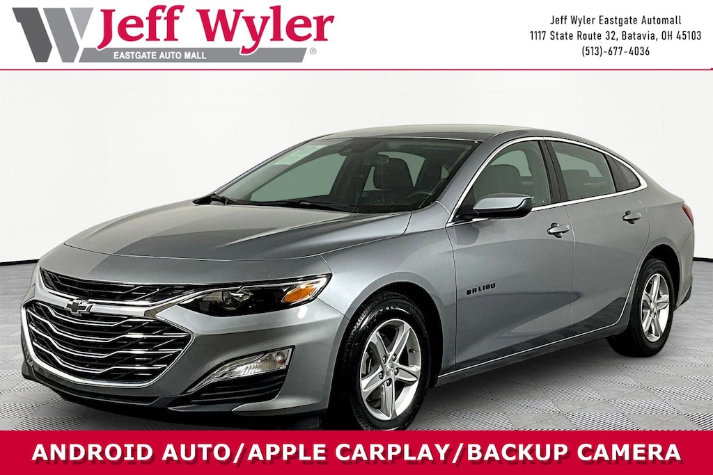 Jeff Wyler Eastgate Auto Mall is honored to offer this superb-looking 2025 Chevrolet Malibu LS in Sterling Gray Metallic. Well equipped with: Preferred Equipment Group 1LS, 16" Aluminum Wheels, 4-Wheel Disc Brakes, 6 Speakers, 6-Speaker Audio System Feature, 6-Way Manual Driver Seat Adjuster, 6-Way Manual Front Passenger Seat Adjuster, ABS brakes, Air Conditioning, All-Weather Floor Mats, Alloy wheels, AM/FM radio, Auto High-beam Headlights, Brake assist, Bumpers: body-color, Compass, Delay-off headlights, Driver door bin, Driver vanity mirror, Dual front impact airbags, Dual front side impact airbags, Electronic Stability Control, Emergency communication system: OnStar and Chevrolet connected services capable, Exterior Parking Camera Rear, Four wheel independent suspension, Front anti-roll bar, Front Bucket Seats, Front Center Armrest, Front reading lights, Fully automatic headlights, Illuminated entry, Knee airbag, Lane Change Alert with Side Blind Zone Alert, Low tire pressure warning, Occupant sensing airbag, Outside temperature display, Overhead airbag, Overhead console, Panic alarm, Passenger door bin, Passenger vanity mirror, Power door mirrors, Power steering, Power windows, Premium audio system: Chevrolet Infotainment 3, Premium Cloth Seat Trim, Radio data system, Radio: Chevrolet Infotainment 3 System, Rear anti-roll bar, Rear Cross Traffic Alert, Rear side impact airbag, Rear window defroster, Remote keyless entry, Security system, Speed control, Split folding rear seat, Steering wheel mounted audio controls, Tachometer, Telescoping steering wheel, Tilt steering wheel, Traction control, Trip computer, Variably intermittent wipers, Voltmeter, and Wireless Apple CarPlay/Android Auto. CARFAX One-Owner. Ask about available certifications. Used vehicles 10 years of age or newer with less than 100,000 miles are eligible for the Wyler Assurance Program, but eligible vehicles must pass our reconditioning process and multi-point inspection. Provided the vehicle passes inspection, vehicles will be eligible for the 6 month/6,000 mile limited warranty. The 6 month/6,000 mile limited warranty is NOT available on AS-IS vehicles, wholesale vehicles, lease buyback/pass-thru vehicles or un-inspected vehicles. Note that this program can also apply to vehicles where the remaining factory coverage is less than 6 months or 6,000 miles. Please check the Federal Trade Commission (FTC) Buyers guide on the vehicle for full details as to whether or not warranty coverage may apply. Contact Dealer for additional details. The Wyler Assurance 6 month/6,000 Mile limited warranty ends 6 months from the date of the Retail Purchase Agreement (BUYERS ORDER) or when the vehicle's odometer registers 6,000 additional miles to the mileage listed on the BUYERS ORDER, whichever comes first. Your Deductible - The warranty holder on your contract pays the first $100 of each covered repair.