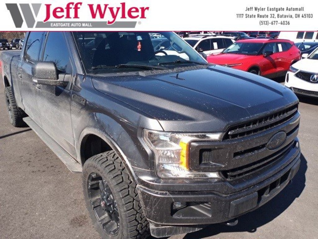 Jeff Wyler Eastgate Auto Mall is honored to offer this gorgeous-looking 2018 Ford F-150 XLT in Magnetic. Well equipped with: Equipment Group 302A Luxury (4.2" Productivity Screen in Instrument Cluster, Auto-Dimming Rear-View Mirror, Class IV Trailer Hitch Receiver, Cloth 40/20/40 Front Seat, Fixed Backlight w/Privacy Glass, Heated Front Seats, Leather-Wrapped Steering Wheel, Power Glass Heated Sideview Mirrors, Power-Adjustable Pedals, Radio: Single-CD/SiriusXM w/7 Speakers, Rear Under-Seat Storage, Rear Window Defroster, Remote Start System, Reverse Sensing System, SYNC, and SYNC 3), FX4 Off-Road Package, Max Trailer Tow Package (Extended Range 36 Gallon Fuel Tank, Higher-Capacity Radiator, Higher-Power Cooling Fans, Integrated Trailer Brake Controller, Pro Trailer Backup Assist, and Upgraded Front Stabilizer Bar), XLT Chrome Appearance Package (2-Bar Style Grille w/Chrome 2 Minor Bars, Chrome Door & Tailgate Handles w/Body-Color Bezel, Chrome Step Bars, Single-Tip Chrome Exhaust, and Wheels: 18" Chrome-Like PVD), XLT Sport Appearance Package (2-Bar Style Grille w/2 Minor Bars Painted Dark, Accent-Color Step Bars, Body-Color Door & Tailgate Handles, Body-Color Front & Rear Bumpers, Box Side Decals, and Wheels: 18" 6-Spoke Machined-Aluminum), 110V/400W Outlet, 4-Wheel Disc Brakes, 6 Speakers, 8-Way Power Driver Seat, ABS brakes, Air Conditioning, Alloy wheels, AM/FM radio, BLIS Blind Spot Information System, Brake assist, Bumpers: chrome, CD player, Compass, Delay-off headlights, Driver door bin, Driver vanity mirror, Dual front impact airbags, Dual front side impact airbags, Electronic Stability Control, Emergency communication system: 911 Assist, Exterior Parking Camera Rear, Front anti-roll bar, Front Center Armrest w/Storage, Front fog lights, Front reading lights, Front wheel independent suspension, Fully automatic headlights, Illuminated entry, Low tire pressure warning, Occupant sensing airbag, Outside temperature display, Overhead airbag, Panic alarm, Passenger door bin, Passenger vanity mirror, Power door mirrors, Power steering, Power windows, Power-Sliding Rear Window, Radio data system, Radio: AM/FM Stereo/Single-CD Player, Rear reading lights, Rear step bumper, Remote keyless entry, Security system, Speed control, Speed-sensing steering, Split folding rear seat, Steering wheel mounted audio controls, Tachometer, Telescoping steering wheel, Tilt steering wheel, Traction control, Variably intermittent wipers, Voice-Activated Touchscreen Navigation System, Voltmeter, Wheels: 17" Silver Painted Aluminum, and Wheels: 20" 6-Spoke Premium Painted Aluminum. Clean CARFAX. Awards: * 2018 KBB.com 10 Most Awarded Brands * 2018 KBB.com Brand Image Awards Ask about available certifications. Used vehicles 10 years of age or newer with less than 100,000 miles are eligible for the Wyler Assurance Program, but eligible vehicles must pass our reconditioning process and multi-point inspection. Provided the vehicle passes inspection, vehicles will be eligible for the 6 month/6,000 mile limited warranty. The 6 month/6,000 mile limited warranty is NOT available on AS-IS vehicles, wholesale vehicles, lease buyback/pass-thru vehicles or un-inspected vehicles. Note that this program can also apply to vehicles where the remaining factory coverage is less than 6 months or 6,000 miles. Please check the Federal Trade Commission (FTC) Buyers guide on the vehicle for full details as to whether or not warranty coverage may apply. Contact Dealer for additional details. The Wyler Assurance 6 month/6,000 Mile limited warranty ends 6 months from the date of the Retail Purchase Agreement (BUYERS ORDER) or when the vehicle's odometer registers 6,000 additional miles to the mileage listed on the BUYERS ORDER, whichever comes first. Your Deductible - The warranty holder on your contract pays the first $100 of each covered repair.