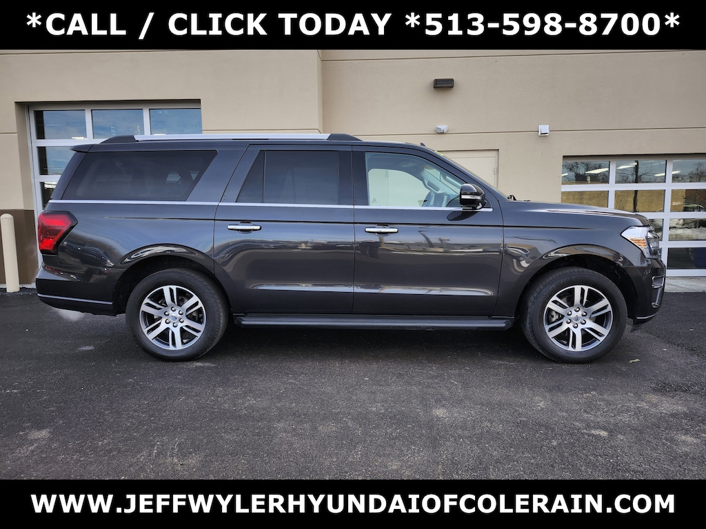 Jeff Wyler Hyundai of Colerain is pleased to offer this good-looking 2024 Ford Expedition Max Limited in Gray Metallic. Well equipped with: Equipment Group 301A Mid Package, 12 Speakers, 2nd Row Power-Folding 40/20/40 Leather Bench Seat, 3.31 Axle Ratio, 3rd row seats: split-bench, 4-Wheel Disc Brakes, ABS brakes, Adjustable pedals, Air Conditioning, Alloy wheels, AM/FM radio: SiriusXM with 360L, Auto High-beam Headlights, Auto-dimming door mirrors, Auto-dimming Rear-View mirror, Automatic temperature control, Brake assist, Bumpers: body-color, Compass, Delay-off headlights, Driver door bin, Driver vanity mirror, Dual front impact airbags, Dual front side impact airbags, Electronic Stability Control, Emergency communication system: SYNC 4 911 Assist, Exterior Parking Camera Rear, Four wheel independent suspension, Front anti-roll bar, Front Bucket Seats, Front Center Armrest, Front dual zone A/C, Front fog lights, Front reading lights, Fully automatic headlights, Garage door transmitter, Heated & Ventilated Leather Front Captain's Chairs, Heated door mirrors, Heated front seats, Heated rear seats, Heated steering wheel, Illuminated entry, Leather steering wheel, Low tire pressure warning, Memory seat, Navigation system: Connected Navigation, Occupant sensing airbag, Outside temperature display, Overhead airbag, Overhead console, Panic alarm, Passenger door bin, Passenger vanity mirror, Pedal memory, Power door mirrors, Power driver seat, Power Liftgate, Power moonroof, Power passenger seat, Power steering, Power windows, Radio data system, Radio: B&O Sound System by Bang & Olufsen, Rain sensing wipers, Rear air conditioning, Rear anti-roll bar, Rear reading lights, Rear window defroster, Rear window wiper, Reclining 3rd row seat, Remote keyless entry, Security system, SiriusXM w/360L, Speed control, Speed-sensing steering, Speed-Sensitive Wipers, Split folding rear seat, Spoiler, Steering wheel memory, Steering wheel mounted audio controls, SYNC 4 w/Enhanced Voice Recognition, Tachometer, Telescoping steering wheel, Tilt steering wheel, Traction control, Trip computer, Turn signal indicator mirrors, Variably intermittent wipers, Ventilated front seats, Voltmeter, and Wheels: 20" Bright Machined Aluminum. CARFAX One-Owner. This sales price excludes tax, title, and dealer fees. While every reasonable effort is made to ensure the accuracy of this information, we are not responsible for any errors or omissions contained on these pages. Used vehicles 10 years of age or newer with less than 100,000 miles are eligible for the Wyler Assurance Program, but eligible vehicles must pass our reconditioning process and multi-point inspection. Provided the vehicle passes inspection, vehicles will be eligible for the 6 month/6,000 mile limited warranty. The 6 month/6,000 mile limited warranty is NOT available on AS-IS vehicles, wholesale vehicles, lease buyback/pass-thru vehicles or un-inspected vehicles. Note that this program can also apply to vehicles where the remaining factory coverage is less than 6 months or 6,000 miles. Please check the Federal Trade Commission (FTC) Buyers guide on the vehicle for full details as to whether or not warranty coverage may apply. Contact Dealer for additional details. The Wyler Assurance 6 month/6,000 Mile limited warranty ends 6 months from the date of the Retail Purchase Agreement (BUYERS ORDER) or when the vehicle's odometer registers 6,000 additional miles to the mileage listed on the BUYERS ORDER, whichever comes first.Your Deductible - The warranty holder on your contract pays the first $100 of each covered repair.
