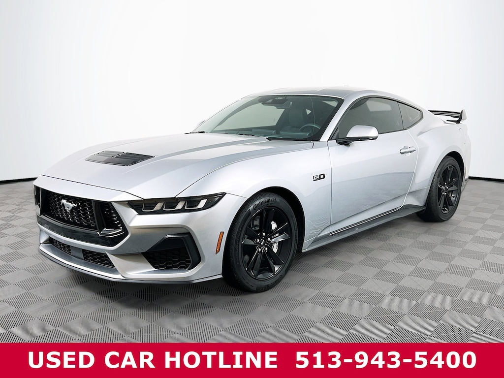 Jeff Wyler Eastgate Auto Mall is honored to offer this attractive-looking 2024 Ford Mustang GT in Iconic Silver Metallic. Well equipped with: Equipment Group 301A High Package, 4-Wheel Disc Brakes, ABS brakes, Active Valve Performance Exhaust, Air Conditioning, Alloy wheels, AM/FM Stereo, Auto High-beam Headlights, Automatic temperature control, Brake assist, Bumpers: body-color, Compass, Delay-off headlights, Driver door bin, Driver vanity mirror, Dual front impact airbags, Dual front side impact airbags, Electronic Stability Control, Emergency communication system: 911 Assist, Exterior Parking Camera Rear, Four wheel independent suspension, Front anti-roll bar, Front Bucket Seats, Front Center Armrest, Front reading lights, Fully automatic headlights, Illuminated entry, Knee airbag, Leather Shift Knob, Leather steering wheel, Low tire pressure warning, Occupant sensing airbag, Outside temperature display, Overhead airbag, Overhead console, Panic alarm, Passenger door bin, Passenger vanity mirror, Power door mirrors, Power steering, Power windows, Radio data system, Rain sensing wipers, Rear anti-roll bar, Rear Parking Sensors, Rear window defroster, Remote keyless entry, Speed control, Speed-sensing steering, Speed-Sensitive Wipers, Split folding rear seat, Spoiler, Sport steering wheel, Steering wheel mounted audio controls, SYNC 4.0 QNX, Tachometer, Telescoping steering wheel, Tilt steering wheel, Traction control, Trip computer, Variably intermittent wipers, Voltmeter, and Wheels: 18" x 8.5" Ebony Black Painted Aluminum. Clean CARFAX. Ask about available certifications. Used vehicles 10 years of age or newer with less than 100,000 miles are eligible for the Wyler Assurance Program, but eligible vehicles must pass our reconditioning process and multi-point inspection. Provided the vehicle passes inspection, vehicles will be eligible for the 6 month/6,000 mile limited warranty. The 6 month/6,000 mile limited warranty is NOT available on AS-IS vehicles, wholesale vehicles, lease buyback/pass-thru vehicles or un-inspected vehicles. Note that this program can also apply to vehicles where the remaining factory coverage is less than 6 months or 6,000 miles. Please check the Federal Trade Commission (FTC) Buyers guide on the vehicle for full details as to whether or not warranty coverage may apply. Contact Dealer for additional details. The Wyler Assurance 6 month/6,000 Mile limited warranty ends 6 months from the date of the Retail Purchase Agreement (BUYERS ORDER) or when the vehicle's odometer registers 6,000 additional miles to the mileage listed on the BUYERS ORDER, whichever comes first. Your Deductible - The warranty holder on your contract pays the first $100 of each covered repair.