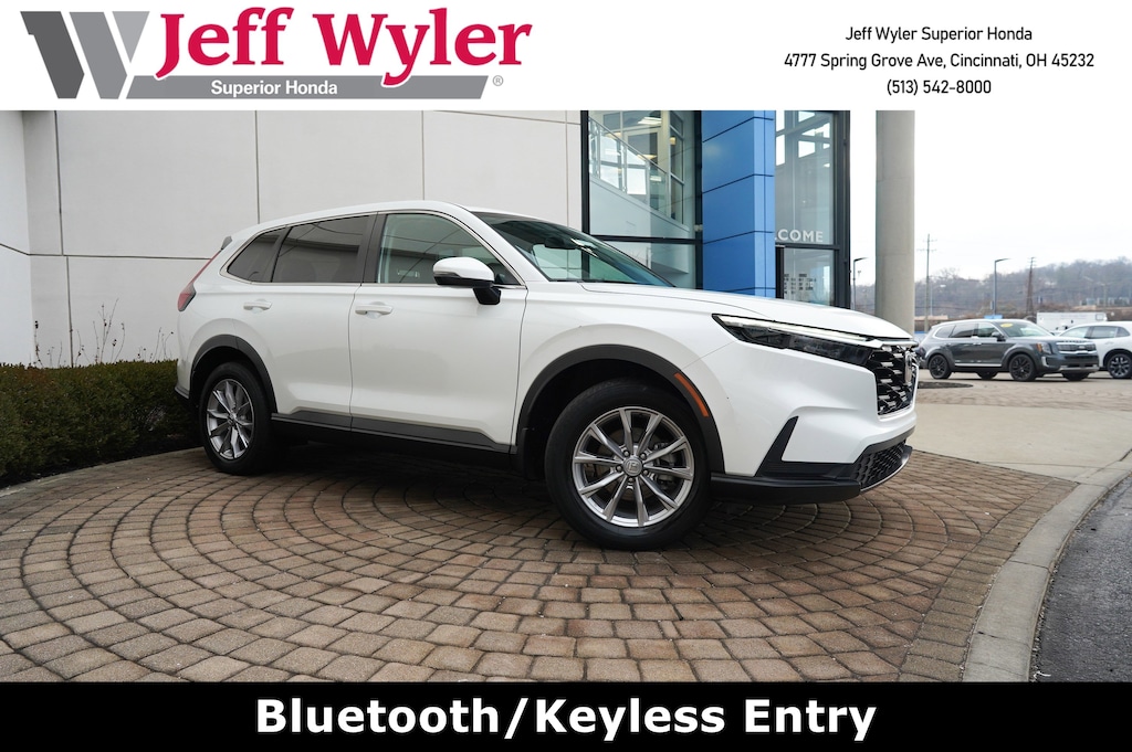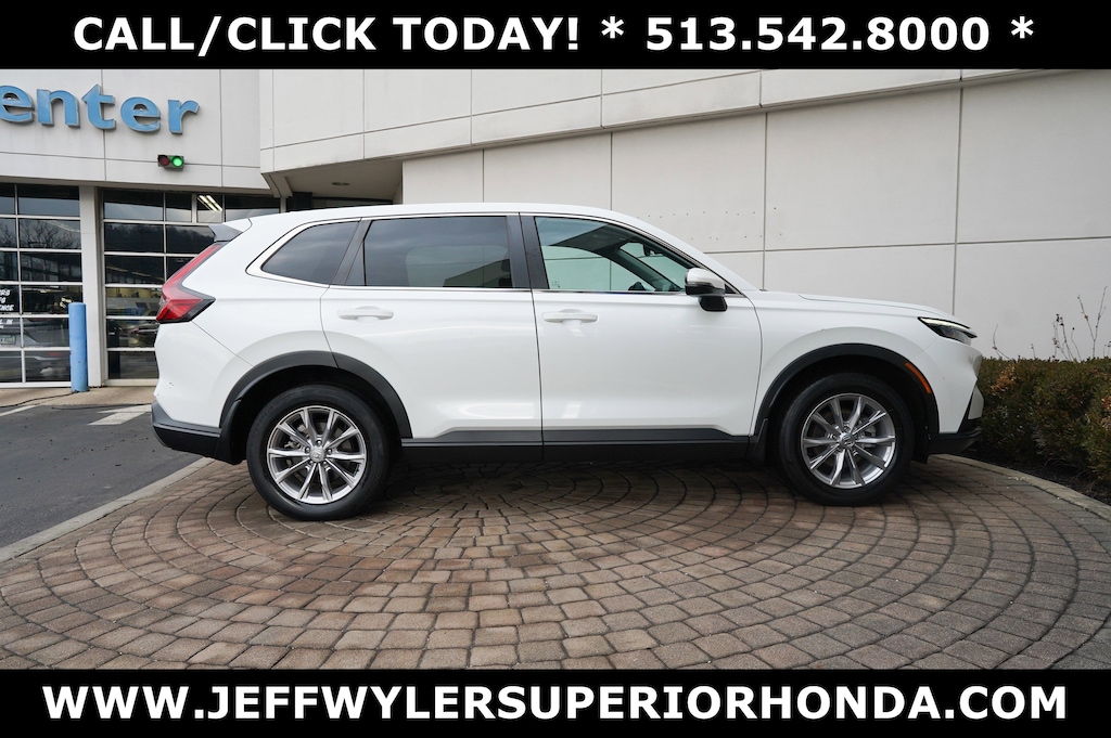 Jeff Wyler Superior Honda is delighted to offer this terrific 2023 Honda CR-V EX in White. BLUETOOTH, MOONROOF SUNROOF, CLEAN CARFAX...NO ACCIDENTS, HONDA CERTIFIED!, ONE OWNER, Apple CarPlay, and Android Auto CR-V EX, HondaTrue Certified Certified, 4D Sport Utility, 1.5L I4 DOHC 16V, CVT, AWD, White, Black Cloth, 4-Wheel Disc Brakes, 5.64 Axle Ratio, 6 Speakers, ABS brakes, Adaptive Cruise Control: Adaptive Cruise Control (ACC) with Low-Speed Follow, Air Conditioning, Alloy wheels, Apple CarPlay/Android Auto, Auto High-beam Headlights, Automatic temperature control, Brake assist, Bumpers: body-color, Cloth Seat Trim, Compass, Delay-off headlights, Driver door bin, Driver vanity mirror, Dual front impact airbags, Dual front side impact airbags, Electronic Stability Control, Exterior Parking Cameras, Four wheel independent suspension, Front anti-roll bar, Front Bucket Seats, Front Center Armrest, Front dual zone A/C, Front reading lights, Fully automatic headlights, Heated door mirrors, Heated Front Bucket Seats, Heated front seats, Illuminated entry, Knee airbag, Low tire pressure warning, Occupant sensing airbag, Outside temperature display, Overhead airbag, Overhead console, Panic alarm, Passenger door bin, Passenger vanity mirror, Power door mirrors, Power driver seat, Power moonroof, Power steering, Power windows, Radio data system, Radio: 240-Watt AM/FM Audio System, Rear anti-roll bar, Rear reading lights, Rear seat center armrest, Rear side impact airbag, Rear window defroster, Rear window wiper, Remote keyless entry, Security system, Speed control, Speed-sensing steering, Speed-Sensitive Wipers, Split folding rear seat, Spoiler, Steering wheel mounted audio controls, Tachometer, Telescoping steering wheel, Tilt steering wheel, Traction control, Trip computer, Turn signal indicator mirrors, Variably intermittent wipers, and Wheels: 18" Sparkle Silver Metallic Our PRE-OWNED vehicles are put through a rigorous 167- POINT QUALITY ASSURANCE INSPECTION along with an average amount of over $1,400.00 SPENT to recondition each vehicle so we can be sure to deliver you the highest quality vehicle like you deserve! ***ONLINE PRICE DOES NOT INCLUDE WYLER FAMILY FIRST PACKAGE*** Stop by 4777 Spring Grove Ave. Road to see for yourself, or give us a call @ 283-209-1858 to schedule your test drive!