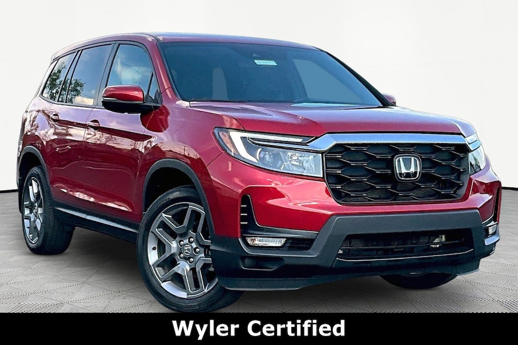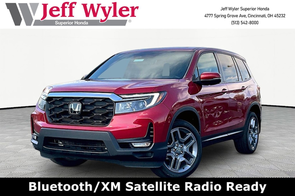Jeff Wyler Superior Honda is delighted to offer this beautiful 2023 Honda Passport EX-L in Radiant Red Metallic II. BLUETOOTH, LEATHER, MOONROOF SUNROOF, CLEAN CARFAX...NO ACCIDENTS, HONDA CERTIFIED!, REMAINDER OF FACTORY WARRANTY, RECENT SUPERIOR TRADE, and ONE OWNER Passport EX-L, HondaTrue Certified Certified, 4D Sport Utility, 3.5L V6 24V SOHC i-VTEC, 9-Speed Automatic, AWD, Radiant Red Metallic II, Black Leather, 4-Wheel Disc Brakes, 4.334 Axle Ratio, 7 Speakers, A/V remote: CabinControl, ABS brakes, Air Conditioning, Alloy wheels, AM/FM radio: SiriusXM, Apple CarPlay/Android Auto, Auto High-beam Headlights, Auto-dimming Rear-View mirror, Automatic temperature control, Blind Spot Information (BSI) System warning, Brake assist, Bumpers: body-color, Delay-off headlights, Driver door bin, Driver vanity mirror, Driver's Seat Mounted Armrest, Dual front impact airbags, Dual front side impact airbags, Electronic Stability Control, Emergency communication system: HondaLink Assist, Exterior Parking Cameras, Four wheel independent suspension, Front anti-roll bar, Front Bucket Seats, Front Center Armrest, Front dual zone A/C, Front reading lights, Fully automatic headlights, Garage door transmitter: HomeLink, Heated door mirrors, Heated Front Bucket Seats, Heated front seats, Illuminated entry, Lane departure: Lane Keeping Assist System (LKAS) active, Leather-Trimmed Seats, Low tire pressure warning, Occupant sensing airbag, Outside temperature display, Overhead airbag, Overhead console, Panic alarm, Passenger door bin, Passenger seat mounted armrest, Passenger vanity mirror, Power door mirrors, Power driver seat, Power Liftgate, Power moonroof, Power passenger seat, Power steering, Power windows, Radio data system, Radio: 215-Watt Audio System w/7 Speakers, Rear air conditioning, Rear anti-roll bar, Rear reading lights, Rear seat center armrest, Rear window defroster, Rear window wiper, Remote keyless entry, Security system, Speed control, Speed-sensing steering, Split folding rear seat, Spoiler, Steering wheel mounted audio controls, Tachometer, Telescoping steering wheel, Tilt steering wheel, Traction control, Trip computer, Turn signal indicator mirrors, Variably intermittent wipers, and Wheels: 20" Pewter Gray Alloy Our PRE-OWNED vehicles are put through a rigorous 167- POINT QUALITY ASSURANCE INSPECTION along with an average amount of over $1,400.00 SPENT to recondition each vehicle so we can be sure to deliver you the highest quality vehicle like you deserve! ***ONLINE PRICE DOES NOT INCLUDE WYLER FAMILY FIRST PACKAGE*** Stop by 4777 Spring Grove Ave. Road to see for yourself, or give us a call @ 283-209-1858 to schedule your test drive!Vehicle pricing includes all offers and incentives. Due to limited inventory, offers and pricing are all subject to change. Tax, Title, Tags and $387 doc fees are not included in vehicle price shown and must be paid by the purchaser. Doc fees vary by location. Financing w/approved credit. Mileage est. Based on current EPA estimates reflecting new EPA methods beginning w/ 2008 models. For comparison only. Do not compare to pre 2008 models. Actual mileage may vary based on how you drive and maintain your vehicle. Information on this site includes 3rd party data believed to be reliable, subject to change without notice. Jeff Wyler reserves the right to correct any errors and/or omissions in the compilation or presentation of this data and makes no representations express or implied to any prospective purchaser as to the vehicle's condition, specifications, history, equipment or equipment function, price or warranties. This vehicle may be subject to an open recall that has not been repaired. Please consult safercar.gov for more information on the current status. It is the responsibility of purchaser to confirm any data prior to purchase. Other than MSRP, all offers only apply to this vehicle and are subject to change. Vehicle prices are subject to change and all vehicles are subject to prior sa