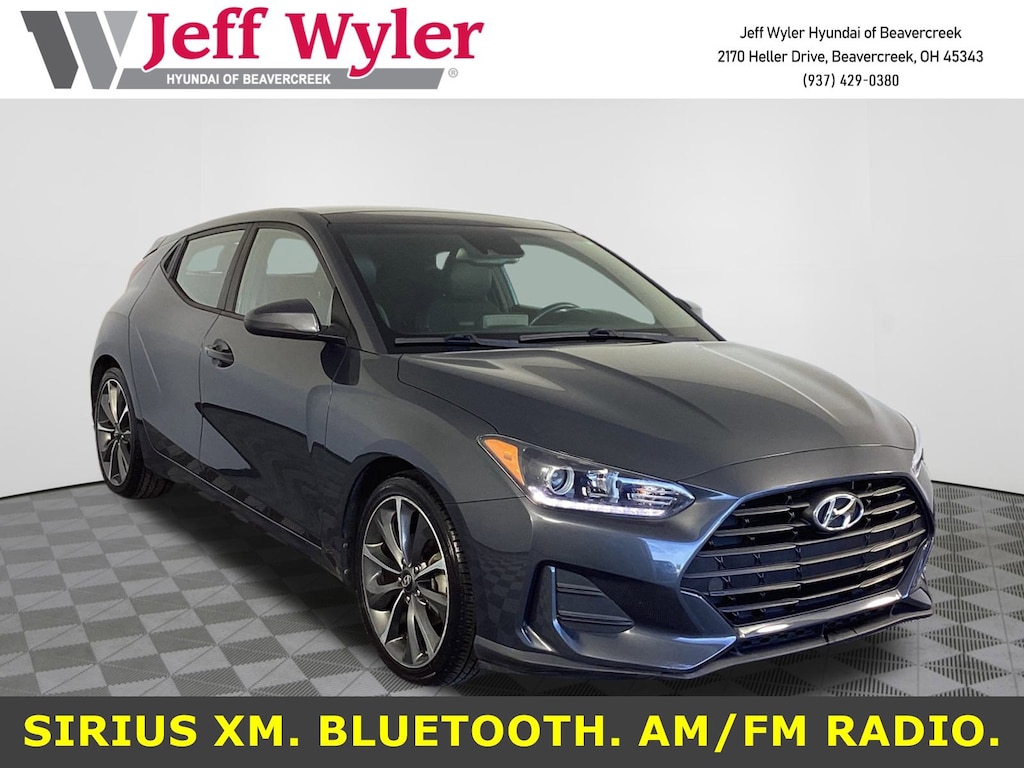 Clean CARFAX. Jeff Wyler Hyundai of Beavercreek is honored to offer this gorgeous-looking 2019 Hyundai Veloster 2.0 Premium in Thunder Gray. Well equipped with: Option Group 01, 18" x 7.5J Alloy Wheels, 4-Wheel Disc Brakes, 8 Speakers, ABS brakes, Air Conditioning, Alloy wheels, AM/FM radio: SiriusXM, Apple CarPlay & Android Auto, Automatic temperature control, Brake assist, Bumpers: body-color, Cargo Net, Carpeted Floor Mats, Combination Leather/Cloth Insert Seat Trim, Delay-off headlights, Driver door bin, Driver vanity mirror, Dual front impact airbags, Dual front side impact airbags, Electronic Stability Control, Emergency communication system: Blue Link, Exterior Parking Camera Rear, Four wheel independent suspension, Front anti-roll bar, Front Bucket Seats, Front Center Armrest, Front reading lights, Fully automatic headlights, Heated door mirrors, Heated Front Bucket Seats, Heated front seats, Illuminated entry, Leather Shift Knob, Leather steering wheel, Low tire pressure warning, Occupant sensing airbag, Outside temperature display, Overhead airbag, Overhead console, Panic alarm, Passenger door bin, Passenger vanity mirror, Power door mirrors, Power moonroof, Power steering, Power windows, Premium audio system: Infinity, Radio: AM/FM 8" Display Audio, Rear anti-roll bar, Rear Bumper Applique, Rear window defroster, Rear window wiper, Remote keyless entry, Security system, Speed control, Speed-sensing steering, Split folding rear seat, Spoiler, Steering wheel mounted audio controls, Tachometer, Telescoping steering wheel, Tilt steering wheel, Traction control, Trip computer, and Variably intermittent wipers.Awards: * 2019 KBB.com 10 Coolest New Cars Under $20,000 * 2019 KBB.com Our 10 Most Awarded Cars of 2019 * 2019 KBB.com 10 Favorite New-for-2019 CarsCome see the excitement at Jeff Wyler Hyundai of Beavercreek! Visit us online at www.jeffwylerhyundaiofbeavercreek.com Proudly Serving: Cincinnati, Dayton, Centeville, Ketttering, Moraine,Beavercreek, Xenia,Oakwood, Trotwood, Vandalia, Kettering, Wright Patterson, Riverside, Engelwood, Miamisburg, Huber Heights, Springboro, Brookville, Fairborn, West Carrollton, Yellow Springs, Bellbrook, Springfield Columbus, Hamilton, West Chester, Monroe, Fairfield. PROUDLY SERVING: CINCINNATI, DAYTON,COLUMBUS, LOUISVILLE, LEXINGTON, INDIANAPOLIS,HAMILTON, FLORENCE, ALEXANDRIA, BEAVERCREEK, SPRINGDALE, WEST CHESTER, MONROE, FAIRFIELD, KENWOOD, NEWPORT AND ALL OF GREATER CINCINNATI OHIO, INDIANA, AND NORTHERN KENTUCKY.