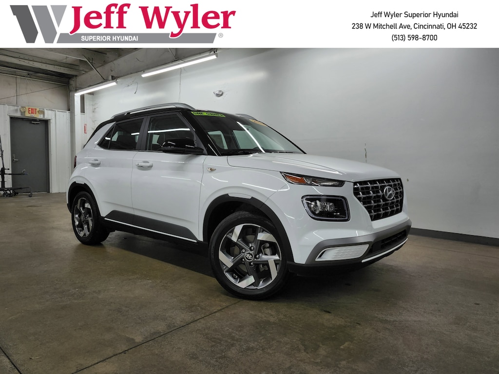 Jeff Wyler Superior Hyundai is pumped up to offer this handsome-looking 2022 Hyundai Venue Limited in Ceramic White. Well equipped with: Option Group 01, 4-Wheel Disc Brakes, 6 Speakers, 6.483 Axle Ratio, 6.5J x 17" Alloy Wheels, ABS brakes, Air Conditioning, Alloy wheels, AM/FM radio: SiriusXM, Apple CarPlay & Android Auto, Auto High-beam Headlights, Automatic temperature control, Brake assist, Bumpers: body-color, Cargo Tray, Carpeted Floor Mats, Cloth Seat Trim, Delay-off headlights, Driver door bin, Driver vanity mirror, Dual front impact airbags, Dual front side impact airbags, Electronic Stability Control, Emergency communication system, Front anti-roll bar, Front Bucket Seats, Front Center Armrest, Front reading lights, Front wheel independent suspension, Fully automatic headlights, Heated door mirrors, Heated Front Bucket Seats, Heated front seats, Illuminated entry, Leather Shift Knob, Leather steering wheel, Low tire pressure warning, Navigation System, Occupant sensing airbag, Outside temperature display, Overhead airbag, Overhead console, Panic alarm, Passenger door bin, Passenger vanity mirror, Power door mirrors, Power steering, Power windows, Radio: AM/FM/HD/SiriusXM Display Audio, Rear Bumper Applique, Rear Seat Cup Holder, Rear window defroster, Rear window wiper, Remote keyless entry, Roof rack: rails only, Security system, Speed control, Speed-sensing steering, Split folding rear seat, Spoiler, Steering wheel mounted audio controls, Tachometer, Telescoping steering wheel, Tilt steering wheel, Traction control, Trip computer, Variably intermittent wipers, and Wheel Locks. CARFAX One-Owner. Clean CARFAX. This sales price excludes tax, title, and dealer fees. While every reasonable effort is made to ensure the accuracy of this information, we are not responsible for any errors or omissions contained on these pages. Used vehicles 10 years of age or newer with less than 100,000 miles are eligible for the Wyler Assurance Program, but eligible vehicles must pass our reconditioning process and multi-point inspection. Provided the vehicle passes inspection, vehicles will be eligible for the 6 month/6,000 mile limited warranty. The 6 month/6,000 mile limited warranty is NOT available on AS-IS vehicles, wholesale vehicles, lease buyback/pass-thru vehicles or un-inspected vehicles. Note that this program can also apply to vehicles where the remaining factory coverage is less than 6 months or 6,000 miles. Please check the Federal Trade Commission (FTC) Buyers guide on the vehicle for full details as to whether or not warranty coverage may apply. Contact Dealer for additional details. The Wyler Assurance 6 month/6,000 Mile limited warranty ends 6 months from the date of the Retail Purchase Agreement (BUYERS ORDER) or when the vehicle's odometer registers 6,000 additional miles to the mileage listed on the BUYERS ORDER, whichever comes first.Your Deductible - The warranty holder on your contract pays the first $100 of each covered repair.