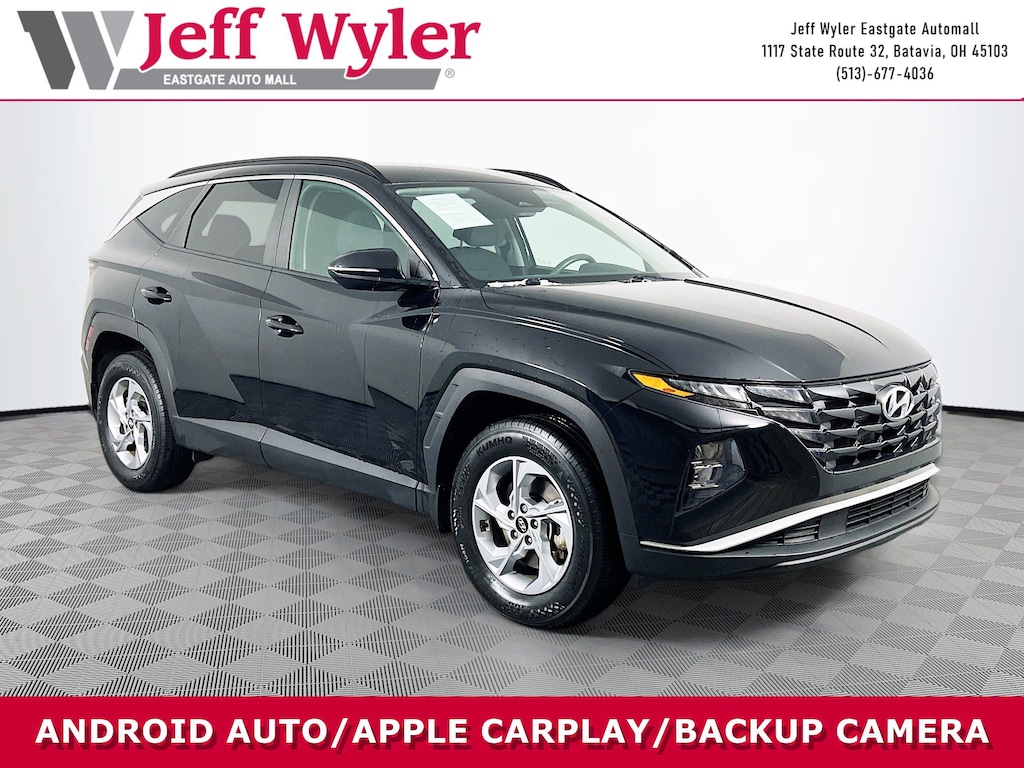 Jeff Wyler Eastgate Auto Mall is honored to offer this wonderful 2023 Hyundai Tucson SEL in Phantom Black. Well equipped with: Option Group 01, 3.648 Axle Ratio, 4-Wheel Disc Brakes, 6 Speakers, ABS brakes, Air Conditioning, Alloy wheels, AM/FM radio: SiriusXM, Apple CarPlay & Android Auto, Auto High-beam Headlights, Brake assist, Bumpers: body-color, Cargo Net, Cargo Tray, Carpeted Floor Mats, Delay-off headlights, Driver door bin, Driver vanity mirror, Dual front impact airbags, Dual front side impact airbags, Electronic Stability Control, Emergency communication system: Blue Link Connected Car Service (3-year complimentary subscription), First Aid Kit, Four wheel independent suspension, Front and Rear Mudguards, Front anti-roll bar, Front Bucket Seats, Front Center Armrest, Front reading lights, Fully automatic headlights, H-Tex Seat Trim, Heated door mirrors, Heated Front Bucket Seats, Heated front seats, Illuminated entry, Low tire pressure warning, Occupant sensing airbag, Outside temperature display, Overhead airbag, Overhead console, Panic alarm, Passenger door bin, Passenger vanity mirror, Power door mirrors, Power driver seat, Power Liftgate, Power steering, Power windows, Radio data system, Radio: AM/FM/HD/SiriusXM Audio System, Rear anti-roll bar, Rear Bumper Applique, Rear seat center armrest, Rear window defroster, Rear window wiper, Remote keyless entry, Roof rack: rails only, Security system, Speed control, Split folding rear seat, Spoiler, Stain & Odor Resistant Cloth Seat Trim, Steering wheel mounted audio controls, Tachometer, Telescoping steering wheel, Tilt steering wheel, Traction control, Trip computer, Turn signal indicator mirrors, Variably intermittent wipers, Wheel Locks, and Wheels: 17" x 7.0J" Alloy. CARFAX One-Owner. Clean CARFAX. Ask about available certifications. Used vehicles 10 years of age or newer with less than 100,000 miles are eligible for the Wyler Assurance Program, but eligible vehicles must pass our reconditioning process and multi-point inspection. Provided the vehicle passes inspection, vehicles will be eligible for the 6 month/6,000 mile limited warranty. The 6 month/6,000 mile limited warranty is NOT available on AS-IS vehicles, wholesale vehicles, lease buyback/pass-thru vehicles or un-inspected vehicles. Note that this program can also apply to vehicles where the remaining factory coverage is less than 6 months or 6,000 miles. Please check the Federal Trade Commission (FTC) Buyers guide on the vehicle for full details as to whether or not warranty coverage may apply. Contact Dealer for additional details. The Wyler Assurance 6 month/6,000 Mile limited warranty ends 6 months from the date of the Retail Purchase Agreement (BUYERS ORDER) or when the vehicle's odometer registers 6,000 additional miles to the mileage listed on the BUYERS ORDER, whichever comes first. Your Deductible - The warranty holder on your contract pays the first $100 of each covered repair.