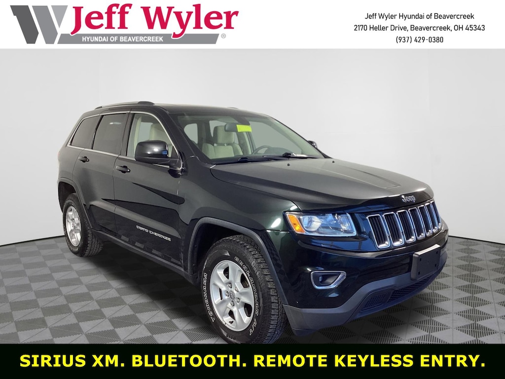 Jeff Wyler Hyundai of Beavercreek is delighted to offer this outstanding-looking 2014 Jeep Grand Cherokee Laredo in Black Forest Green Pearlcoat. Well equipped with: Quick Order Package 23E (Bright Side Roof Rails, Power 4-Way Driver Lumbar Adjust, Power 8-Way Driver/Manual Passenger Seat, and SIRIUSXM Satellite Radio), Security & Convenience Group (115V Auxiliary Power Outlet, Cargo Compartment Cover, Power Liftgate, Security Alarm, and Universal Garage Door Opener), 17" x 8.0" Aluminum Wheels, 3.45 Rear Axle Ratio, 4-Wheel Disc Brakes, 6 Speakers, ABS brakes, Air Conditioning, Alloy wheels, AM/FM radio, Anti-whiplash front head restraints, Automatic temperature control, Brake assist, Bumpers: body-color, Cloth Low-Back Bucket Seats, Compass, Delay-off headlights, Driver door bin, Driver vanity mirror, Dual front impact airbags, Dual front side impact airbags, Electronic Stability Control, Four wheel independent suspension, Front anti-roll bar, Front Bucket Seats, Front Center Armrest w/Storage, Front dual zone A/C, Front fog lights, Front reading lights, Fully automatic headlights, Heated door mirrors, Illuminated entry, Knee airbag, Leather Shift Knob, Low Beam Daytime Running Headlamps, Low tire pressure warning, Manufacturer's Statement of Origin, Normal Duty Suspension, Occupant sensing airbag, Outside temperature display, Overhead airbag, Overhead console, Panic alarm, Passenger door bin, Passenger vanity mirror, Power door mirrors, Power steering, Power windows, Radio data system, Radio: Uconnect 5.0 AM/FM/BT, Rear anti-roll bar, Rear reading lights, Rear seat center armrest, Rear window defroster, Rear window wiper, Remote keyless entry, Single Pane Power Sunroof, Speed control, Speed-Sensitive Wipers, Split folding rear seat, Spoiler, Steering wheel mounted audio controls, Tachometer, Telescoping steering wheel, Tilt steering wheel, Traction control, Trip computer, and Variably intermittent wipers.Come see the excitement at Jeff Wyler Hyundai of Beavercreek! Visit us online at www.jeffwylerhyundaiofbeavercreek.com Proudly Serving: Cincinnati, Dayton, Centeville, Ketttering, Moraine,Beavercreek, Xenia,Oakwood, Trotwood, Vandalia, Kettering, Wright Patterson, Riverside, Engelwood, Miamisburg, Huber Heights, Springboro, Brookville, Fairborn, West Carrollton, Yellow Springs, Bellbrook, Springfield Columbus, Hamilton, West Chester, Monroe, Fairfield. PROUDLY SERVING: CINCINNATI, DAYTON,COLUMBUS, LOUISVILLE, LEXINGTON, INDIANAPOLIS,HAMILTON, FLORENCE, ALEXANDRIA, BEAVERCREEK, SPRINGDALE, WEST CHESTER, MONROE, FAIRFIELD, KENWOOD, NEWPORT AND ALL OF GREATER CINCINNATI OHIO, INDIANA, AND NORTHERN KENTUCKY.