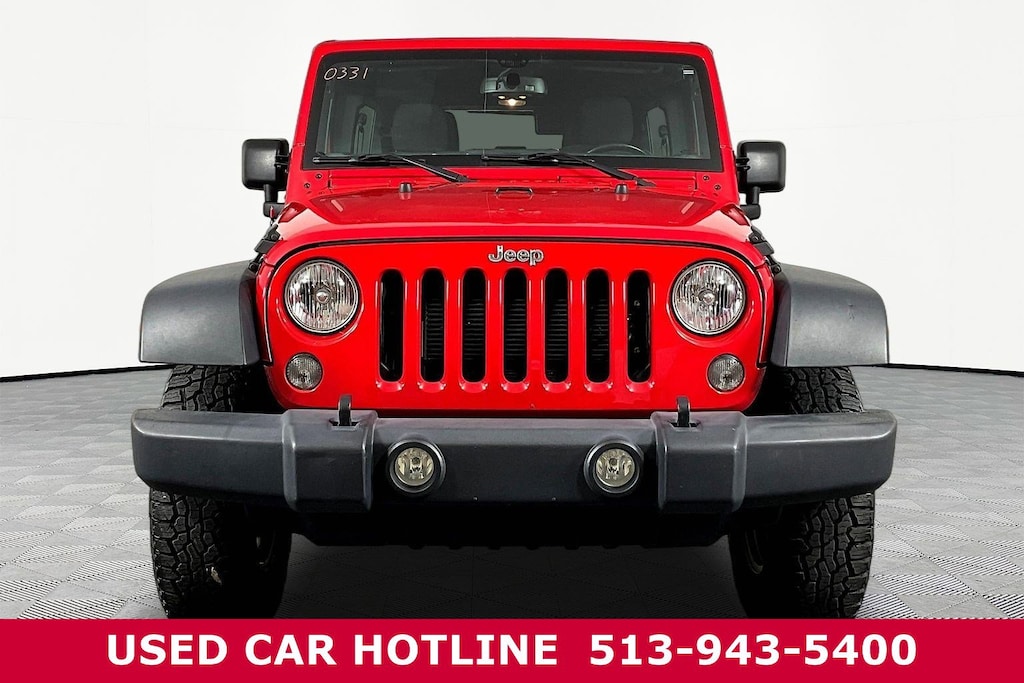 Jeff Wyler Eastgate Auto Mall is proud to offer this good-looking 2017 Jeep Wrangler Unlimited Sport in Firecracker Red Clearcoat. Well equipped with: Connectivity Group (Remote USB Port, Tire Pressure Monitoring Display, Uconnect Voice Command w/Bluetooth, and Vehicle Information Center), Quick Order Package 24S (17" x 7.5" Aluminum Wheels, Auto-Dimming Mirror w/Reading Lamp, Chrome/Leather Wrapped Shift Knob, Deep Tint Sunscreen Windows, Front 1-Touch Down Power Windows, Leather Wrapped Steering Wheel, Power Convenience Group, Power Heated Mirrors, Power Locks, Remote Keyless Entry, and Security Alarm), 1-Yr SiriusXM Radio Service, 16" x 7.0" Luxury Styled Steel Wheels, 3.21 Rear Axle Ratio, 4-Wheel Disc Brakes, 8 Speakers, ABS brakes, Air Conditioning, Alpine 9-Speaker w/All Weather Subwoofer, AM/FM radio, Black 3-Piece Hard Top, Brake assist, CD player, Cloth Seats w/Adjustable Head Restraints, Compass, Delete Sunrider Soft Top, Driver door bin, Driver vanity mirror, Dual front impact airbags, Electronic Stability Control, Freedom Panel Storage Bag, Front anti-roll bar, Front Bucket Seats, Front Center Armrest w/Storage, Front fog lights, Integrated roll-over protection, Low tire pressure warning, Manufacturer's Statement of Origin, Normal Duty Suspension, Occupant sensing airbag, Outside temperature display, Passenger door bin, Passenger vanity mirror, Power steering, Radio: 130, Radio: 430, Rear anti-roll bar, Rear Window Defroster, Rear Window Wiper/Washer, SIRIUS Satellite Radio, Speed control, Split folding rear seat, Steering wheel mounted audio controls, Tachometer, Tilt steering wheel, Traction control, Trip computer, and Variably intermittent wipers. Clean CARFAX. Awards: * 2017 KBB.com 10 Most Awarded Brands Ask about available certifications. Used vehicles 10 years of age or newer with less than 100,000 miles are eligible for the Wyler Assurance Program, but eligible vehicles must pass our reconditioning process and multi-point inspection. Provided the vehicle passes inspection, vehicles will be eligible for the 6 month/6,000 mile limited warranty. The 6 month/6,000 mile limited warranty is NOT available on AS-IS vehicles, wholesale vehicles, lease buyback/pass-thru vehicles or un-inspected vehicles. Note that this program can also apply to vehicles where the remaining factory coverage is less than 6 months or 6,000 miles. Please check the Federal Trade Commission (FTC) Buyers guide on the vehicle for full details as to whether or not warranty coverage may apply. Contact Dealer for additional details. The Wyler Assurance 6 month/6,000 Mile limited warranty ends 6 months from the date of the Retail Purchase Agreement (BUYERS ORDER) or when the vehicle's odometer registers 6,000 additional miles to the mileage listed on the BUYERS ORDER, whichever comes first. Your Deductible - The warranty holder on your contract pays the first $100 of each covered repair.