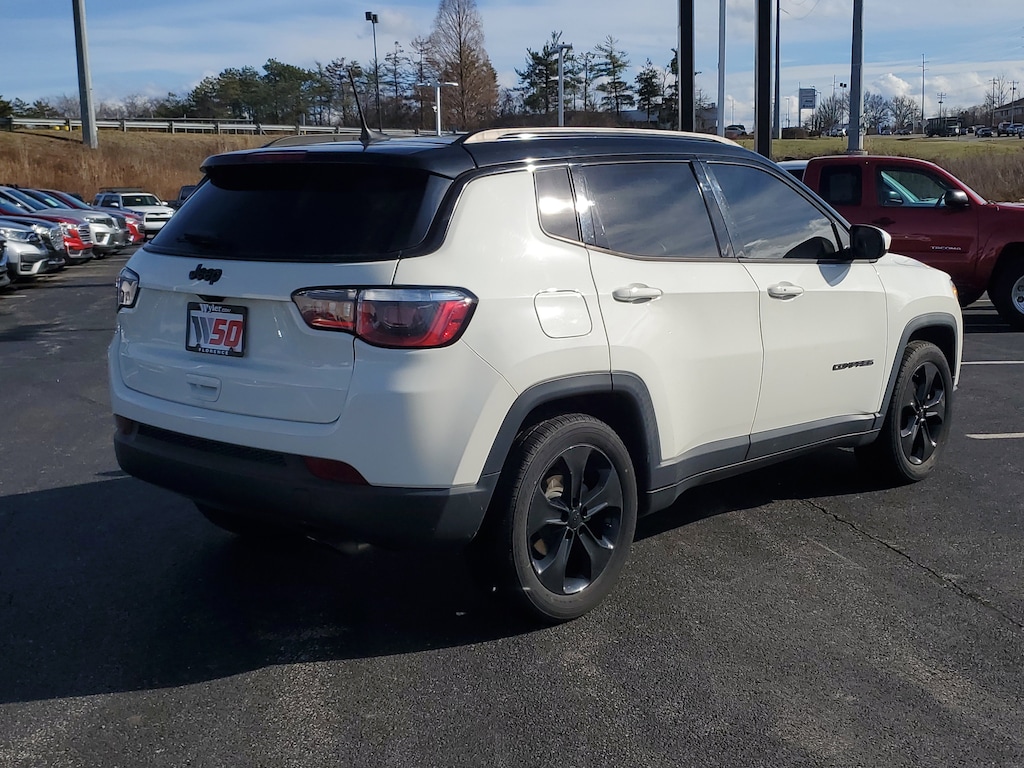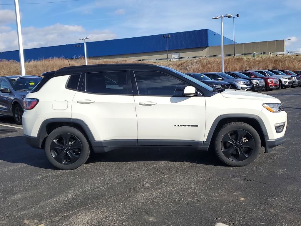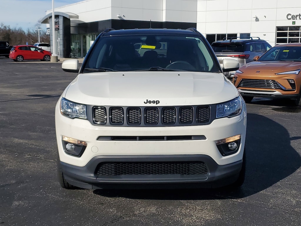 Jeff Wyler Florence Buick GMC is delighted to offer this good-looking 2019 Jeep Compass Altitude in White Clearcoat. Cold Weather Group (All-Season Floor Mats, Heated Front Seats, Heated Steering Wheel, Remote Start System, Reversible Carpet/Vinyl Cargo Mat, and Windshield Wiper De-Icer), Popular Equipment Group (4-Way Power Lumbar Adjust, Cluster 7.0 Color Driver Info Display, and Power 8-Way Driver/Manual 6-Way Passenger Seats), Quick Order Package 28B Altitude (Altitude Special Edition, Black Day Light Opening Moldings, Black Grille w/Black Rings, Black Roof, Bright Exhaust Tip, Gloss Black Compass Badge, Gloss Black Fog Lamp Bezels, Gloss Black Jeep Badge, Gloss Black Lower Rear Fascia Valance, Wheels: 18 x 7.0 Black Aluminum, and Piano Black Interior Accents), 6 Speakers, Alloy wheels, Automatic temperature control, Beats Premium Audio System, Bluetooth® Streaming Audio, Bumpers: body-color, Delay-off headlights, Front dual zone A/C, Front fog lights, Fully automatic headlights, Heated door mirrors, Illuminated entry, Leather Shift Knob, Media Hub (USB, AUX), ParkView Rear Back-Up Camera, Power door mirrors, Radio: Uconnect 4 w/7 Display, Remote keyless entry, Spoiler, Steering wheel mounted audio controls, Telescoping steering wheel, Tilt steering wheel, 3.502 Axle Ratio, 4-Wheel Disc Brakes, ABS brakes, Air Conditioning, AM/FM radio, Anti-whiplash front head restraints, Brake assist, Compass, Driver door bin, Driver vanity mirror, Dual front impact airbags, Dual front side impact airbags, Electronic Stability Control, Four wheel independent suspension, Front anti-roll bar, Front Bucket Seats, Front Center Armrest w/Storage, Front reading lights, Knee airbag, Low tire pressure warning, Occupant sensing airbag, Outside temperature display, Overhead airbag, Overhead console, Panic alarm, Passenger door bin, Passenger vanity mirror, Power steering, Power windows, Premium Cloth/Vinyl Bucket Seats, Rear anti-roll bar, Rear seat center armrest, Rear window defroster, Rear window wiper, Roof rack: rails only, Speed control, Split folding rear seat, Tachometer, Traction control, Trip computer, and Variably intermittent wipers Our PRE-OWNED vehicles are put through a rigorous 167- POINT QUALITY ASSURANCE INSPECTION along with an average amount of over $1,400.00 SPENT to recondition each vehicle so we can be sure to deliver you the highest quality vehicle like you deserve! ***ONLINE PRICE DOES NOT INCLUDE WYLER FAMILY FIRST PACKAGE*** Stop by 1154 Burlington Pike Florence KY 41402to see for yourself, or give us a call @ 859-525-8001 to schedule your test drive!
