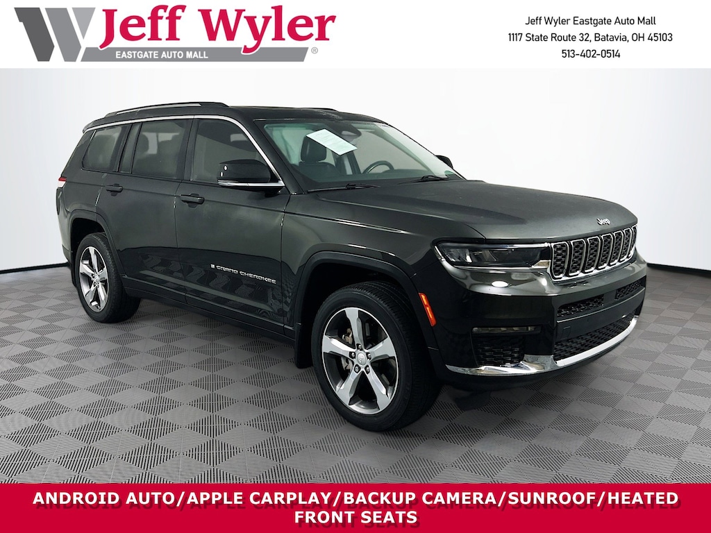 Jeff Wyler Eastgate Auto Mall is delighted to offer this terrific-looking 2021 Jeep Grand Cherokee L Limited in Rocky Mountain Pearlcoat. Well equipped with: Quick Order Package 22E, 10.1" Touchscreen Display, 2nd Row 60/40 Bench w/Manual Tip/Slide, 2nd Row Seat Center Armrest/Cupholders, 3 Rear Seat Head Restraints, 3.45 Rear Axle Ratio, 3rd row seats: split-bench, 4-Wheel Disc Brakes, 506 Watt Amplifier, 6 Speakers, 7-Passenger Seating, 9 Amplified Speakers w/Subwoofer, ABS brakes, Air Conditioning, Alloy wheels, AM/FM radio: SiriusXM w/360L, Anti-whiplash front head restraints, Apple CarPlay, Apple CarPlay/Android Auto, Audio memory, Auto High-beam Headlights, Automatic temperature control, Brake assist, Bridgestone Brand Tires, Bumpers: body-color, Capri Leather Seats, Center Rear 3-Point Seat Belt, Compass, Connected Travel & Traffic Services, Connectivity - US/Canada, Delay-off headlights, Disassociated Touchscreen Display, Driver door bin, Driver vanity mirror, Dual front impact airbags, Dual front side impact airbags, Dual-Pane Panoramic Sunroof, Electronic Stability Control, Emergency communication system, Four wheel independent suspension, Front anti-roll bar, Front Bucket Seats, Front Center Armrest w/Storage, Front dual zone A/C, Front fog lights, Front reading lights, Fully automatic headlights, Garage door transmitter, Google Android Auto, GPS Antenna Input, GPS Navigation, HD Radio, Heated door mirrors, Heated front seats, Heated rear seats, Heated steering wheel, Illuminated entry, Integrated Center Stack Radio, Integrated Voice Command w/Bluetooth, Interior Rear Facing Camera, Knee airbag, Leather steering wheel, Low tire pressure warning, Manual Fold Seatbacks, Memory seat, Normal Duty Suspension, Occupant sensing airbag, Outside temperature display, Overhead airbag, Overhead console, Panic alarm, ParkView Rear Back-Up Camera, Passenger door bin, Passenger vanity mirror, Power door mirrors, Power driver seat, Power Liftgate, Power passenger seat, Power steering, Power windows, Radio data system, Radio: Uconnect 5 Nav w/10.1" Display, Radio: Uconnect 5 w/8.4" Display, Rear air conditioning, Rear anti-roll bar, Rear reading lights, Rear window defroster, Rear window wiper, Reclining 3rd row seat, Remote keyless entry, Roof rack: rails only, Security system, SiriusXM Satellite Radio, SiriusXM w/360L, Speed control, Speed-Sensitive Wipers, Split folding rear seat, Spoiler, Steering wheel mounted audio controls, Tachometer, Telescoping steering wheel, Tilt steering wheel, Traction control, Trip computer, Turn signal indicator mirrors, USB Host Flip, Variably intermittent wipers, Voltmeter, Wheels: 18" x 8.0" Fully Painted Aluminum 2, and Wheels: 20" x 8.5" Polished/Painted Aluminum (DISC) CARFAX One-Owner. Ask about available certifications. Used vehicles 10 years of age or newer with less than 100,000 miles are eligible for the Wyler Assurance Program, but eligible vehicles must pass our reconditioning process and multi-point inspection. Provided the vehicle passes inspection, vehicles will be eligible for the 6 month/6,000 mile limited warranty. The 6 month/6,000 mile limited warranty is NOT available on AS-IS vehicles, wholesale vehicles, lease buyback/pass-thru vehicles or un-inspected vehicles. Note that this program can also apply to vehicles where the remaining factory coverage is less than 6 months or 6,000 miles. Please check the Federal Trade Commission (FTC) Buyers guide on the vehicle for full details as to whether or not warranty coverage may apply. Contact Dealer for additional details. The Wyler Assurance 6 month/6,000 Mile limited warranty ends 6 months from the date of the Retail Purchase Agreement (BUYERS ORDER) or when the vehicle's odometer registers 6,000 additional miles to the mileage listed on the BUYERS ORDER, whichever comes first. Your Deductible - The warranty holder on your contract pays the first $100 of each covered repair.