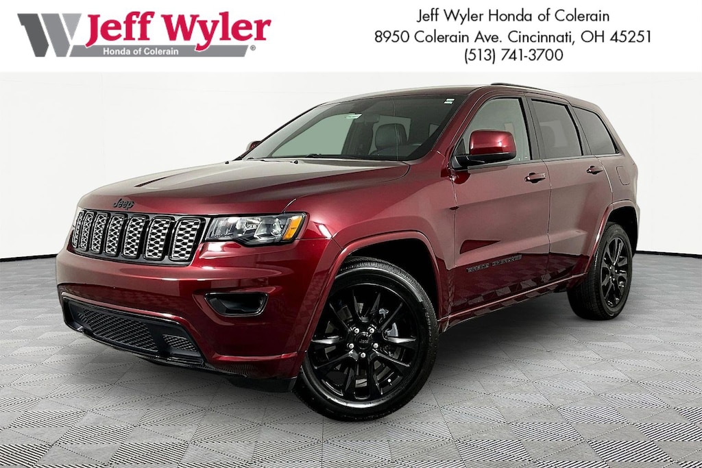 Jeff Wyler Honda of Colerain is pleased to offer this stunning 2021 Jeep Grand Cherokee Laredo X in Velvet Red Pearlcoat. Well equipped with: Altitude Appearance Package (Altitude Grille, Black Roof Molding, Body Color Claddings, Body Color Fascia, Body Color Shark Fin Antenna, Bridgestone Brand Tires, Dark Day Light Opening Moldings, Dark Headlamp Bezel Finish, Dark Lens Taillamps, Delete Laredo Badge, Front Accent/Body Color Fascia, Gloss Black Jeep Badging, Gloss Black Rear Fascia Applique, Rear Accent/Body Color Fascia, Rear Fascia Black Molded in Color Step Pad, Single Exhaust w/Bright Tip, and Wheels: 20" x 8.0" Gloss Black Aluminum), MOPAR Interior Protection Group, Quick Order Package 2BM Laredo X (DISC) (4G LTE Wi-Fi Hot Spot, 5-Year SiriusXM Traffic Service, 5-Year SiriusXM Travel Link Service, 8.4" Touchscreen Display, Apple CarPlay, Black Suede Seats w/Black Stitching, Google Android Auto, GPS Antenna Input, GPS Navigation, HD Radio, Heated Front Seats, Heated Steering Wheel, Instrument Cluster w/Off-Road Disp. Pages, Integrated Voice Command w/Bluetooth, Power Liftgate, Radio: Uconnect 4C Nav w/8.4" Display, Remote Start System, Security Alarm, Steering Wheel Mounted Audio Controls, and Universal Garage Door Opener), Trailer Tow Group IV (180 Amp Alternator, 7 & 4 Pin Wiring Harness, Class IV Receiver Hitch, Heavy-Duty Engine Cooling, and Rear Load Leveling Suspension), 3.45 Rear Axle Ratio, 4-Wheel Disc Brakes, 6 Speakers, ABS brakes, Air Conditioning, Alloy wheels, AM/FM radio: SiriusXM, Anti-whiplash front head restraints, Apple CarPlay/Android Auto, Automatic temperature control, Brake assist, Bumpers: body-color, Cloth Bucket Seats, Compass, Delay-off headlights, Driver door bin, Driver vanity mirror, Dual front impact airbags, Dual front side impact airbags, Electronic Stability Control, Four wheel independent suspension, Front anti-roll bar, Front Bucket Seats, Front Center Armrest w/Storage, Front dual zone A/C, Front fog lights, Front reading lights, Fully automatic headlights, Heated door mirrors, Illuminated entry, Knee airbag, Leather Shift Knob, Low tire pressure warning, MOPAR Cargo Area Liner (DISC), MOPAR Slush Mats (DISC), Normal Duty Suspension, Occupant sensing airbag, Outside temperature display, Overhead airbag, Overhead console, Panic alarm, ParkView Rear Back-Up Camera, Passenger door bin, Passenger vanity mirror, Power door mirrors, Power driver seat, Power steering, Power windows, Radio data system, Radio: Uconnect 4 w/7" Display, Rear anti-roll bar, Rear reading lights, Rear seat center armrest, Rear window defroster, Rear window wiper, Remote keyless entry, Roof rack: rails only, Speed control, Speed-sensing steering, Speed-Sensitive Wipers, Split folding rear seat, Spoiler, Steering wheel mounted audio controls, Tachometer, Telescoping steering wheel, Tilt steering wheel, Traction control, Trip computer, Variably intermittent wipers, and Wheels: 18" x 8.0" Fine Silver Aluminum.