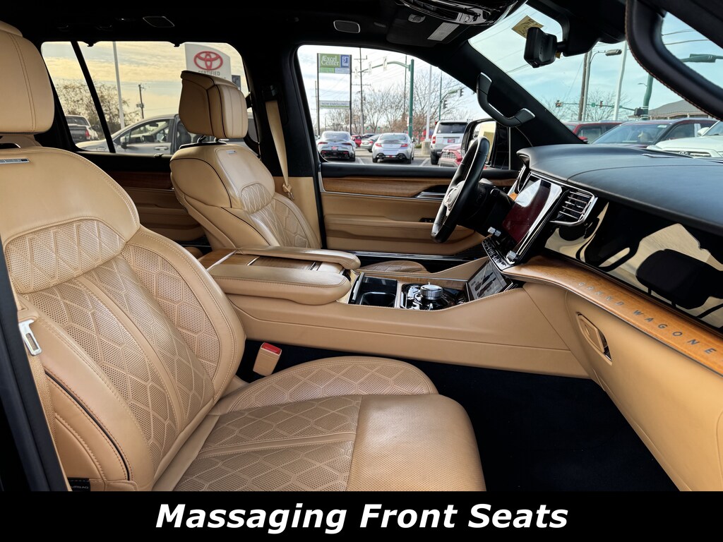 Recent Arrival!Quick Order Package 23W, Two Tone Paint Group, 3.92 Rear Axle Ratio, 3rd row seats: bench, 4-Wheel Disc Brakes, ABS brakes, Adjustable pedals, Air Conditioning, Alloy wheels, AM/FM radio: SiriusXM with 360L, Anti-whiplash front head restraints, Audio memory, Auto High-beam Headlights, Auto-dimming door mirrors, Auto-dimming Rear-View mirror, Auto-leveling suspension, Automatic temperature control, Body Color Roof, Brake assist, Bumpers: body-color, Compass, Delay-off headlights, Driver door bin, Driver vanity mirror, Driver's Seat Mounted Armrest, Dual front impact airbags, Dual front side impact airbags, Electronic Stability Control, Four wheel independent suspension, Front anti-roll bar, Front Bucket Seats, Front Center Armrest w/Storage, Front dual zone A/C, Front fog lights, Front reading lights, Fully automatic headlights, Garage door transmitter, Genuine wood console insert, Genuine wood dashboard insert, Genuine wood door panel insert, Heads-Up Display, Heated door mirrors, Heated front seats, Heated rear seats, Heated steering wheel, Illuminated entry, Knee airbag, Leather steering wheel, Low tire pressure warning, Memory seat, Navigation System, Night vision lights, Normal Duty Suspension, Occupant sensing airbag, Outside temperature display, Overhead airbag, Overhead console, Panic alarm, Passenger door bin, Passenger seat mounted armrest, Passenger vanity mirror, Pedal memory, Power adjustable front head restraints, Power door mirrors, Power driver seat, Power Liftgate, Power moonroof, Power passenger seat, Power steering, Power windows, Premium Leather Trimmed Bucket Seats, Radio data system, Radio: Uconnect 5 Nav w/12.0 Display, Rain sensing wipers, Rear air conditioning, Rear anti-roll bar, Rear dual zone A/C, Rear reading lights, Rear seat center armrest, Rear window defroster, Rear window wiper, Reclining 3rd row seat, Remote keyless entry, Roof rack, Security system, Speed control, Speed-sensing steering, Speed-Sensitive Wipers, Split folding rear seat, Steering wheel memory, Steering wheel mounted audio controls, Tachometer, Telescoping steering wheel, Tilt steering wheel, Traction control, Trip computer, Turn signal indicator mirrors, Variably intermittent wipers, Ventilated front seats, Ventilated rear seats, Voltmeter, and Wheels: 22 x 9.0 Premium 4 Aluminum.