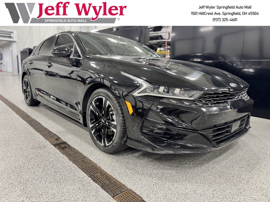 Jeff Wyler Springfield Auto Mall is delighted to offer this beautiful-looking 2021 Kia K5 GT-Line in Ebony Black. Well equipped with: GT-Line FWD Premium Package, 4-Wheel Disc Brakes, 6 Speakers, ABS brakes, Air Conditioning, Alloy wheels, AM/FM radio, Apple CarPlay & Android Auto, Auto High-beam Headlights, Automatic temperature control, Brake assist, Bumpers: body-color, Cargo Mat, Carpeted Floor Mats, Cloth/Leatherette Seat Trim, Delay-off headlights, Driver door bin, Driver vanity mirror, Dual front impact airbags, Dual front side impact airbags, Electronic Stability Control, Four wheel independent suspension, Front anti-roll bar, Front Bucket Seats, Front Center Armrest, Front dual zone A/C, Front fog lights, Front reading lights, Fully automatic headlights, Heated door mirrors, Illuminated Door Sill Plates, Illuminated entry, Knee airbag, Low tire pressure warning, Mud Guards, Occupant sensing airbag, Outside temperature display, Overhead airbag, Overhead console, Panic alarm, Passenger door bin, Passenger vanity mirror, Power door mirrors, Power driver seat, Power steering, Power windows, Radio data system, Radio: AM/FM/MP3 Audio System, Rear anti-roll bar, Rear seat center armrest, Rear side impact airbag, Rear window defroster, Remote keyless entry, Security system, Speed control, Speed-sensing steering, Split folding rear seat, Spoiler, Sport steering wheel, Steering wheel mounted audio controls, Tachometer, Telescoping steering wheel, Tilt steering wheel, Traction control, Trip computer, Turn signal indicator mirrors, Variably intermittent wipers, and Wheels: 7.5J x 18" Graphite Machined Finish Alloy. Ask about available certifications. Used vehicles 10 years of age or newer with less than 100,000 miles are eligible for the Wyler Assurance Program, but eligible vehicles must pass our reconditioning process and multi-point inspection. Provided the vehicle passes inspection, vehicles will be eligible for the 6 month/6,000 mile limited warranty. The 6 month/6,000 mile limited warranty is NOT available on AS-IS vehicles, wholesale vehicles, lease buyback/pass-thru vehicles or un-inspected vehicles. Note that this program can also apply to vehicles where the remaining factory coverage is less than 6 months or 6,000 miles. Please check the Federal Trade Commission (FTC) Buyers guide on the vehicle for full details as to whether or not warranty coverage may apply. Contact Dealer for additional details. The Wyler Assurance 6 month/6,000 Mile limited warranty ends 6 months from the date of the Retail Purchase Agreement (BUYERS ORDER) or when the vehicle's odometer registers 6,000 additional miles to the mileage listed on the BUYERS ORDER, whichever comes first. Your Deductible - The warranty holder on your contract pays the first $100 of each covered repair.