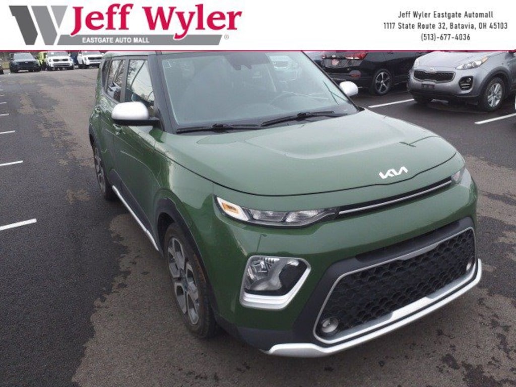 Jeff Wyler Eastgate Auto Mall is pumped up to offer this handsome 2022 Kia Soul X-Line in Undercover Green. Well equipped with: 18" x 7.5" Alloy Wheels, 4-Wheel Disc Brakes, 6 Speakers, ABS brakes, Air Conditioning, Alloy wheels, AM/FM radio: SiriusXM, Apple CarPlay & Android Auto, Automatic temperature control, Brake assist, Bumpers: body-color, Carpeted Floor Mats, Delay-off headlights, Driver door bin, Driver vanity mirror, Dual front impact airbags, Dual front side impact airbags, Electronic Stability Control, Emergency communication system: UVO Link, Exterior Parking Camera Rear, Front anti-roll bar, Front Bucket Seats, Front Center Armrest, Front dual zone A/C, Front fog lights, Front reading lights, Front wheel independent suspension, Fully automatic headlights, Illuminated entry, Leather Shift Knob, Leather steering wheel, Low tire pressure warning, Navigation System, Occupant sensing airbag, Outside temperature display, Overhead airbag, Overhead console, Panic alarm, Passenger door bin, Passenger vanity mirror, Power door mirrors, Power steering, Power windows, Premium Cloth Seat Trim, Radio: AM/FM/MP3 Audio System, Rear window defroster, Rear window wiper, Remote keyless entry, Roof rack: rails only, Speed control, Speed-sensing steering, Split folding rear seat, Steering wheel mounted audio controls, Tachometer, Telescoping steering wheel, Tilt steering wheel, Traction control, Trip computer, and Variably intermittent wipers. Clean CARFAX. Ask about available certifications. Used vehicles 10 years of age or newer with less than 100,000 miles are eligible for the Wyler Assurance Program, but eligible vehicles must pass our reconditioning process and multi-point inspection. Provided the vehicle passes inspection, vehicles will be eligible for the 6 month/6,000 mile limited warranty. The 6 month/6,000 mile limited warranty is NOT available on AS-IS vehicles, wholesale vehicles, lease buyback/pass-thru vehicles or un-inspected vehicles. Note that this program can also apply to vehicles where the remaining factory coverage is less than 6 months or 6,000 miles. Please check the Federal Trade Commission (FTC) Buyers guide on the vehicle for full details as to whether or not warranty coverage may apply. Contact Dealer for additional details. The Wyler Assurance 6 month/6,000 Mile limited warranty ends 6 months from the date of the Retail Purchase Agreement (BUYERS ORDER) or when the vehicle's odometer registers 6,000 additional miles to the mileage listed on the BUYERS ORDER, whichever comes first. Your Deductible - The warranty holder on your contract pays the first $100 of each covered repair.