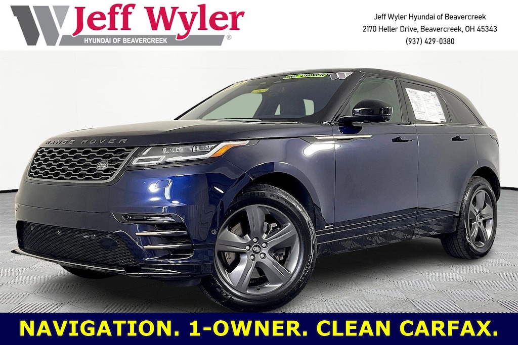 CARFAX One-Owner. Clean CARFAX. Jeff Wyler Hyundai of Beavercreek is very proud to offer this good-looking 2021 Land Rover Range Rover Velar P250 R-Dynamic S in Portofino Blue Metallic. Well equipped with: 11 Speakers, 14-Way Front Seats w/Driver Memory, 3.23 Axle Ratio, 4-Wheel Disc Brakes, ABS brakes, Air Conditioning, Alloy wheels, AM/FM radio: SiriusXM, Apple CarPlay & Android Auto, Auto High-beam Headlights, Auto tilt-away steering wheel, Auto-dimming door mirrors, Auto-dimming Rear-View mirror, Automatic temperature control, Brake assist, Bumpers: body-color, Compass, Delay-off headlights, Driver door bin, Driver vanity mirror, Dual front impact airbags, Dual front side impact airbags, Electronic Stability Control, Emergency communication system, Exterior Parking Camera Rear, Four wheel independent suspension, Front anti-roll bar, Front Bucket Seats, Front Center Armrest, Front dual zone A/C, Front reading lights, Fully automatic headlights, Garage door transmitter, Headlight cleaning, Heated door mirrors, Illuminated entry, Low tire pressure warning, Memory seat, Navigation system: Connected Navigation PIVI Pro, Occupant sensing airbag, Outside temperature display, Overhead airbag, Overhead console, Panic alarm, Passenger door bin, Passenger vanity mirror, Perforated Grained Leather & Suedecloth Seat Trim, Power door mirrors, Power driver seat, Power Liftgate, Power moonroof, Power passenger seat, Power steering, Power windows, Radio data system, Radio: Meridian Sound System (380W), Rain sensing wipers, Rear anti-roll bar, Rear fog lights, Rear reading lights, Rear seat center armrest, Rear window defroster, Rear window wiper, Remote keyless entry, Security system, Speed control, Speed-sensing steering, Speed-Sensitive Wipers, Split folding rear seat, Spoiler, Steering wheel memory, Steering wheel mounted audio controls, Tachometer, Telescoping steering wheel, Tilt steering wheel, Traction control, Trip computer, Turn signal indicator mirrors, Variably intermittent wipers, and Wheels: 19" 5 Spoke Satin Dark Grey.Come see the excitement at Jeff Wyler Hyundai of Beavercreek! Visit us online at www.jeffwylerhyundaiofbeavercreek.com Proudly Serving: Cincinnati, Dayton, Centeville, Ketttering, Moraine,Beavercreek, Xenia,Oakwood, Trotwood, Vandalia, Kettering, Wright Patterson, Riverside, Engelwood, Miamisburg, Huber Heights, Springboro, Brookville, Fairborn, West Carrollton, Yellow Springs, Bellbrook, Springfield Columbus, Hamilton, West Chester, Monroe, Fairfield. PROUDLY SERVING: CINCINNATI, DAYTON,COLUMBUS, LOUISVILLE, LEXINGTON, INDIANAPOLIS,HAMILTON, FLORENCE, ALEXANDRIA, BEAVERCREEK, SPRINGDALE, WEST CHESTER, MONROE, FAIRFIELD, KENWOOD, NEWPORT AND ALL OF GREATER CINCINNATI OHIO, INDIANA, AND NORTHERN KENTUCKY.