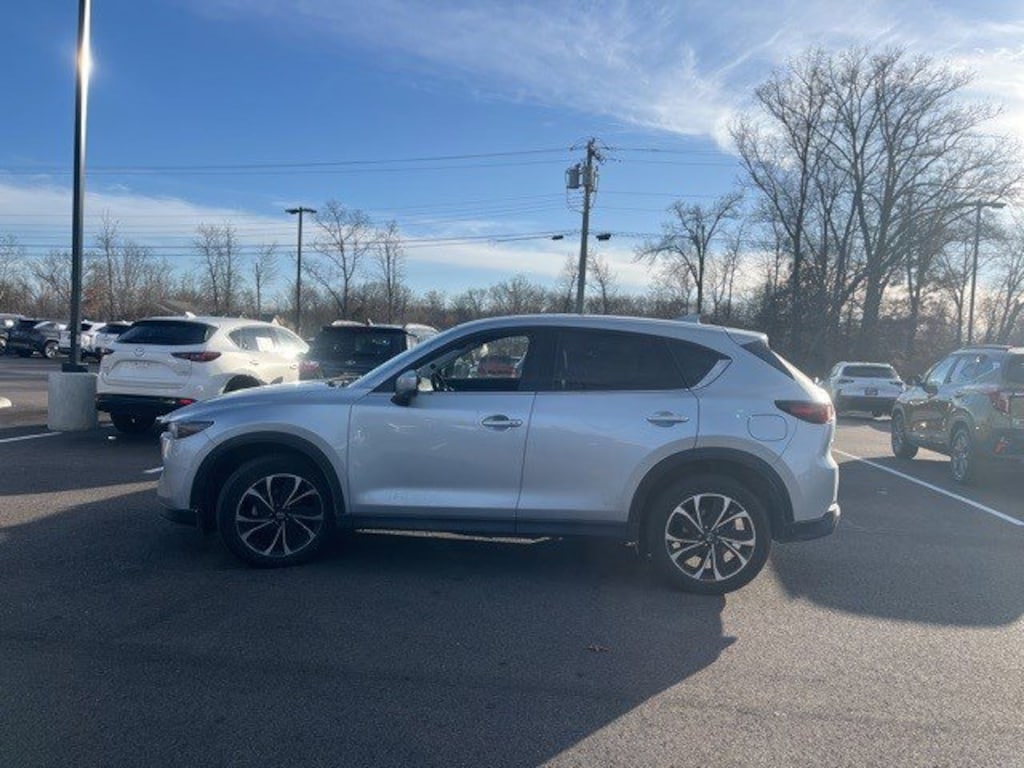 Jeff Wyler Eastgate Auto Mall is honored to offer this gorgeous-looking 2023 Mazda CX-5 2.5 S Premium Plus Package in Sonic Silver Metallic. Well equipped with: 10 Speakers, 4-Wheel Disc Brakes, 4.624 Axle Ratio, ABS brakes, Air Conditioning, Alloy wheels, AM/FM radio: SiriusXM, AppLink/Apple CarPlay and Android Auto, Auto High-beam Headlights, Auto-dimming Rear-View mirror, Automatic temperature control, Brake assist, Bumpers: body-color, Cargo Net, Delay-off headlights, Driver door bin, Driver vanity mirror, Dual front impact airbags, Dual front side impact airbags, E911 Automatic Emergency Notification, Electronic Stability Control, Emergency communication system: MAZDA CONNECT, Exterior Parking Camera Rear, Four wheel independent suspension, Front anti-roll bar, Front Bucket Seats, Front Center Armrest w/Storage, Front dual zone A/C, Front reading lights, Fully automatic headlights, Garage door transmitter: HomeLink, Heads-Up Display, Heated door mirrors, Heated front seats, Heated rear seats, Heated steering wheel, Heated/Ventilated Front Bucket Seats, Illuminated entry, Infotainment System Voice Command, Leather Seat Trim, Leather Shift Knob, Low tire pressure warning, Memory seat, Multifunction Commander Control, Occupant sensing airbag, Outside temperature display, Overhead airbag, Overhead console, Pandora, Panic alarm, Passenger door bin, Passenger vanity mirror, Power door mirrors, Power driver seat, Power Liftgate, Power moonroof, Power passenger seat, Power steering, Power windows, Radio Broadcast Data System Program Information, Radio data system, Radio: AM/FM/HD Audio System, Rain sensing wipers, Rear anti-roll bar, Rear reading lights, Rear seat center armrest, Rear window defroster, Rear window wiper, Remote keyless entry, Roof Rack Side Rails, SMS Text Msg Audio Delivery & Reply, Speed control, Speed-sensing steering, Split folding rear seat, Spoiler, Steering wheel mounted audio controls, Tachometer, Telescoping steering wheel, Tilt steering wheel, Traction control, Trip computer, Turn signal indicator mirrors, Variably intermittent wipers, Ventilated front seats, and Wheels: 19" x 7J Aluminum Alloy. Clean CARFAX. Ask about available certifications. Used vehicles 10 years of age or newer with less than 100,000 miles are eligible for the Wyler Assurance Program, but eligible vehicles must pass our reconditioning process and multi-point inspection. Provided the vehicle passes inspection, vehicles will be eligible for the 6 month/6,000 mile limited warranty. The 6 month/6,000 mile limited warranty is NOT available on AS-IS vehicles, wholesale vehicles, lease buyback/pass-thru vehicles or un-inspected vehicles. Note that this program can also apply to vehicles where the remaining factory coverage is less than 6 months or 6,000 miles. Please check the Federal Trade Commission (FTC) Buyers guide on the vehicle for full details as to whether or not warranty coverage may apply. Contact Dealer for additional details. The Wyler Assurance 6 month/6,000 Mile limited warranty ends 6 months from the date of the Retail Purchase Agreement (BUYERS ORDER) or when the vehicle's odometer registers 6,000 additional miles to the mileage listed on the BUYERS ORDER, whichever comes first. Your Deductible - The warranty holder on your contract pays the first $100 of each covered repair.