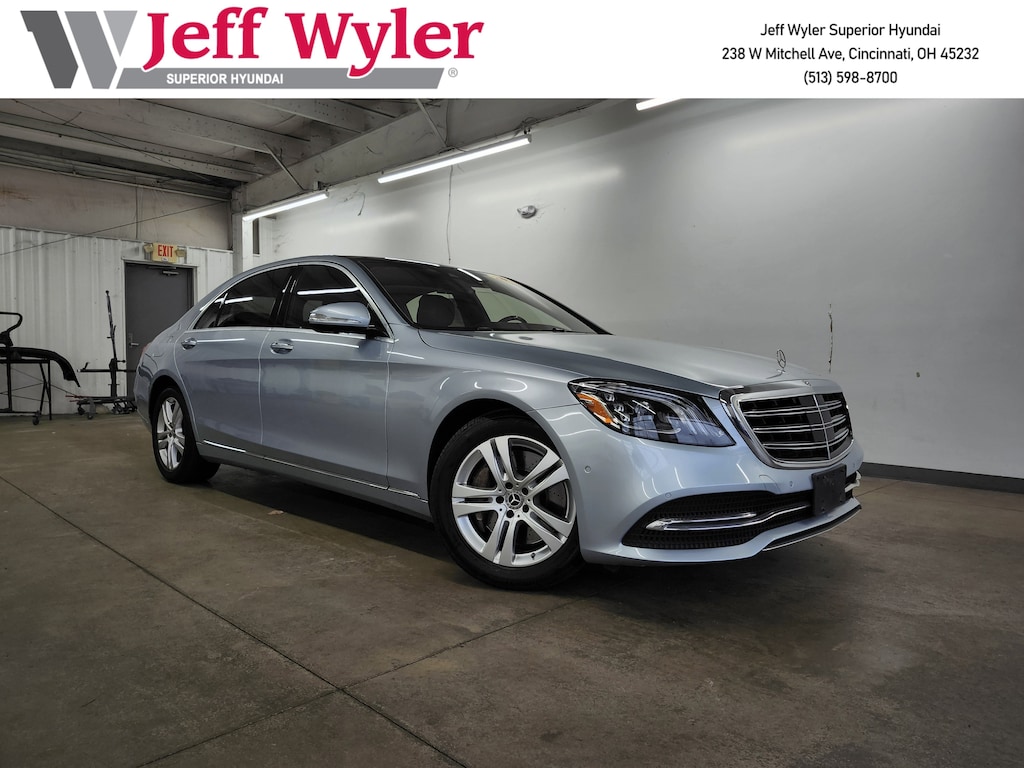 Jeff Wyler Superior Hyundai is delighted to offer this superb 2019 Mercedes-Benz S-Class S 560 in Diamond Silver Metallic. Well equipped with: 4MATIC®, Black Leather, 13 Speakers, 19" Multi-Spoke Wheels, 4-Wheel Disc Brakes, ABS brakes, Adaptive suspension, Air Conditioning, Alloy wheels, AM/FM radio: SiriusXM, Android Auto®, Apple CarPlay®, Apple CarPlay®/Android Auto®, Auto High-beam Headlights, Auto tilt-away steering wheel, Auto-dimming door mirrors, Auto-dimming Rear-View mirror, Auto-leveling suspension, Automatic temperature control, Brake assist, Bumpers: body-color, Burmester® Surround Sound System, Child-Seat-Sensing Airbag, Compass, Delay-off headlights, Door auto-latch, Driver door bin, Driver vanity mirror, Dual front impact airbags, Dual front side impact airbags, Electronic Stability Control, Emergency communication system: eCall Emergency System, Exterior Parking Camera Rear, Four wheel independent suspension, Front anti-roll bar, Front Bucket Seats, Front Center Armrest, Front dual zone A/C, Front reading lights, Garage door transmitter: Homelink, Genuine wood console insert, Genuine wood door panel insert, Head restraints memory, Heated door mirrors, Heated Front Seats, Heated front seats, HVAC memory, Illuminated entry, Knee airbag, Low tire pressure warning, Memory seat, Navigation system: COMAND®, Occupant sensing airbag, Outside temperature display, Overhead airbag, Overhead console, Panic alarm, Passenger door bin, Passenger vanity mirror, Perforated Nappa Leather Upholstery, Power adjustable front head restraints, Power adjustable rear head restraints, Power door mirrors, Power driver seat, Power Front Seats w/3-Position Memory, Power moonroof: Panorama, Power passenger seat, Power steering, Power windows, Pre-Wiring for CD Player, Premium audio system: COMAND®, Radio data system, Radio: COMAND® System w/Navigation, Rain sensing wipers, Rear anti-roll bar, Rear fog lights, Rear reading lights, Rear seat center armrest, Rear side impact airbag, Rear Window Blind, Rear window defroster, Remote keyless entry, Security system, SiriusXM Satellite Radio, Smartphone Integration, Speed control, Speed-sensing steering, Steering wheel memory, Steering wheel mounted audio controls, Tachometer, Telescoping steering wheel, Tilt steering wheel, Traction control, Trip computer, Turn signal indicator mirrors, Variably intermittent wipers, and Weather band radio. Clean CARFAX. This sales price excludes tax, title, and dealer fees. While every reasonable effort is made to ensure the accuracy of this information, we are not responsible for any errors or omissions contained on these pages. Used vehicles 10 years of age or newer with less than 100,000 miles are eligible for the Wyler Assurance Program, but eligible vehicles must pass our reconditioning process and multi-point inspection. Provided the vehicle passes inspection, vehicles will be eligible for the 6 month/6,000 mile limited warranty. The 6 month/6,000 mile limited warranty is NOT available on AS-IS vehicles, wholesale vehicles, lease buyback/pass-thru vehicles or un-inspected vehicles. Note that this program can also apply to vehicles where the remaining factory coverage is less than 6 months or 6,000 miles. Please check the Federal Trade Commission (FTC) Buyers guide on the vehicle for full details as to whether or not warranty coverage may apply. Contact Dealer for additional details. The Wyler Assurance 6 month/6,000 Mile limited warranty ends 6 months from the date of the Retail Purchase Agreement (BUYERS ORDER) or when the vehicle's odometer registers 6,000 additional miles to the mileage listed on the BUYERS ORDER, whichever comes first.Your Deductible - The warranty holder on your contract pays the first $100 of each covered repair.