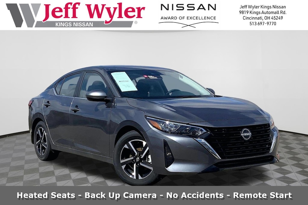 $2,583 off MSRP! Jeff Wyler Kings Nissan is pleased to offer this charming-looking 2025 Nissan Sentra SV in Gun Metallic. Well equipped with: All-Weather Package (Dual Zone Auto Climate Control, Heated Exterior Mirrors, Heated Front Seats, Leather-Wrapped Heated Steering Wheel, and Remote Engine Start), CVT with Xtronic, Charcoal Cloth, 16" Alloy Wheels, 4-Wheel Disc Brakes, 8 Speakers, ABS brakes, Air Conditioning, Alloy wheels, AM/FM radio: SiriusXM, Auto High-beam Headlights, Blind Spot Warning, Body Colored Splash Guards (4-Piece), Brake assist, Bumpers: body-color, Carpeted Floor Mats w/Trunk Mat, Clear Rear Bumper Protector, Delay-off headlights, Door Sill Plates, Driver door bin, Driver vanity mirror, Dual front impact airbags, Dual front side impact airbags, Electronic Stability Control, Four wheel independent suspension, Front anti-roll bar, Front Bucket Seats, Front Center Armrest, Front reading lights, Fully automatic headlights, Illuminated entry, Knee airbag, Low tire pressure warning, NissanConnect featuring Apple CarPlay and Android Auto, Occupant sensing airbag, Outside temperature display, Overhead airbag, Overhead console, Panic alarm, Passenger door bin, Passenger vanity mirror, Power door mirrors, Power steering, Power windows, Radio data system, Radio: AM/FM w/RDS/MP3/Aux-In, Rear anti-roll bar, Rear Parking Sensors, Rear side impact airbag, Rear window defroster, Remote keyless entry, Security system, Speed control, Speed-sensing steering, Split folding rear seat, Steering wheel mounted audio controls, Tachometer, Telescoping steering wheel, Tilt steering wheel, Traction control, Trip computer, Upgraded Cloth Seat Trim, and Variably intermittent wipers. 30/40 City/Highway MPG