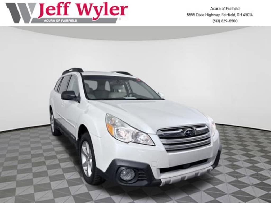 Jeff Wyler Acura of Fairfield is honored to offer this good-looking 2014 Subaru Outback 2.5i in Satin White Pearl. Moonroof Package (Auto-Dimming Rear View Mirror w/Homelink, Power Moonroof, and Rear Vision Camera), 17" x 7.0" Aluminum Alloy w/Machine Finish Wheels, 3.9 Axle Ratio, 4-Wheel Disc Brakes, 9 Speakers, ABS brakes, Air Conditioning, All Weather Floor Mats (Set of 4), Alloy wheels, AM/FM radio: SiriusXM, Anti-whiplash front head restraints, Automatic temperature control, Brake assist, Bumpers: body-color, CD player, Driver door bin, Driver vanity mirror, Dual front impact airbags, Dual front side impact airbags, Electronic Stability Control, Four wheel independent suspension, Front anti-roll bar, Front Bucket Seats, Front Center Armrest w/Storage, Front dual zone A/C, Front fog lights, Front reading lights, Fully automatic headlights, harman/kardon Speaker System, harman/kardon® Speakers, Heated door mirrors, Heated Front Bucket Seats, Heated front seats, Illuminated entry, Low tire pressure warning, Occupant sensing airbag, Outside temperature display, Overhead airbag, Overhead console, Panic alarm, Passenger door bin, Passenger vanity mirror, Perforated Leather-Trimmed Upholstery, Power door mirrors, Power driver seat, Power passenger seat, Power steering, Power windows, Radio data system, Radio: AM/FM Stereo w/HD Radio & Single CD Player, Rear anti-roll bar, Rear Bumper Cover, Rear Cargo Net, Rear Seat Back Protector, Rear seat center armrest, Rear Side Compartment Cargo Net (Set of 2), Rear window defroster, Rear window wiper, Remote keyless entry, Roof rack, Security system, Speed control, Speed-sensing steering, Splash Guards, Split folding rear seat, Spoiler, Steering wheel mounted audio controls, Steering-Wheel Paddle-Shift Control Switches, Tachometer, Telescoping steering wheel, Tilt steering wheel, Traction control, Trip computer, and Variably intermittent wipers ***ONLINE PRICE DOES NOT INCLUDE WYLER FAMILY FIRST PACKAGE*** Clean CARFAX.Reviews: * Need a lot of interior room? Reasonable fuel economy? Rugged durability? All-weather capability? Good results on crash tests? And all that at an affordable price? The 2014 Outback should be high on your list. Source: KBB.com * Spacious interior; comfortable ride; excellent visibility; clever roof rails; above average off-road capability. Source: EdmundsAwards: * 2014 IIHS Top Safety Pick, Top Safety Pick+ * 2014 KBB.com 10 Best Used SUVs Under $15,000 * 2014 KBB.com 10 Best All-Wheel Drive Cars & SUVs Under $25,000 * 2014 KBB.com 10 Best Used Family Cars Under $15,000Proudly Serving: Cincinnati, Dayton, Columbus, Louisville, Lexington, Indianapolis, Hamilton, Florence, Alexandria, Beavercreek, Springdale, West Chester, Monroe, Fairfield, Kenwood, Newport and all of greater Cincinnati Ohio, Indiana, and Northern Kentucky.