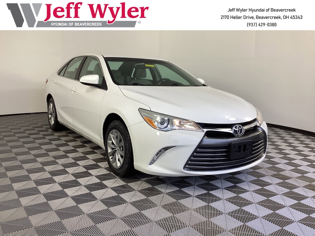 Clean CARFAX. Jeff Wyler Hyundai of Beavercreek is very proud to offer this wonderful-looking 2017 Toyota Camry in White. Well equipped with: 4-Wheel Disc Brakes, ABS brakes, Air Conditioning, Brake assist, Bumpers: body-color, CD player, Delay-off headlights, Driver door bin, Driver vanity mirror, Dual front impact airbags, Dual front side impact airbags, Electronic Stability Control, Exterior Parking Camera Rear, Four wheel independent suspension, Front anti-roll bar, Front Bucket Seats, Front Center Armrest, Front reading lights, Fully automatic headlights, Heated door mirrors, Illuminated entry, Knee airbag, Low tire pressure warning, Occupant sensing airbag, Outside temperature display, Overhead airbag, Overhead console, Panic alarm, Passenger door bin, Passenger vanity mirror, Power door mirrors, Power driver seat, Power steering, Power windows, Rear anti-roll bar, Rear seat center armrest, Rear side impact airbag, Rear window defroster, Remote keyless entry, Speed control, Speed-sensing steering, Split folding rear seat, Steering wheel mounted audio controls, Tachometer, Telescoping steering wheel, Tilt steering wheel, Traction control, Trip computer, and Variably intermittent wipers.Awards: * 2017 KBB.com 10 Best Sedans Under $25,000 * 2017 KBB.com 10 Most Comfortable Cars Under $30,000 * 2017 KBB.com 10 Best Used Cars Under $20,000 * 2017 KBB.com 10 Most Awarded Brands * 2017 KBB.com Best Resale Value AwardsCome see the excitement at Jeff Wyler Hyundai of Beavercreek! Visit us online at www.jeffwylerhyundaiofbeavercreek.com Proudly Serving: Cincinnati, Dayton, Centeville, Ketttering, Moraine,Beavercreek, Xenia,Oakwood, Trotwood, Vandalia, Kettering, Wright Patterson, Riverside, Engelwood, Miamisburg, Huber Heights, Springboro, Brookville, Fairborn, West Carrollton, Yellow Springs, Bellbrook, Springfield Columbus, Hamilton, West Chester, Monroe, Fairfield. PROUDLY SERVING: CINCINNATI, DAYTON,COLUMBUS, LOUISVILLE, LEXINGTON, INDIANAPOLIS,HAMILTON, FLORENCE, ALEXANDRIA, BEAVERCREEK, SPRINGDALE, WEST CHESTER, MONROE, FAIRFIELD, KENWOOD, NEWPORT AND ALL OF GREATER CINCINNATI OHIO, INDIANA, AND NORTHERN KENTUCKY.
