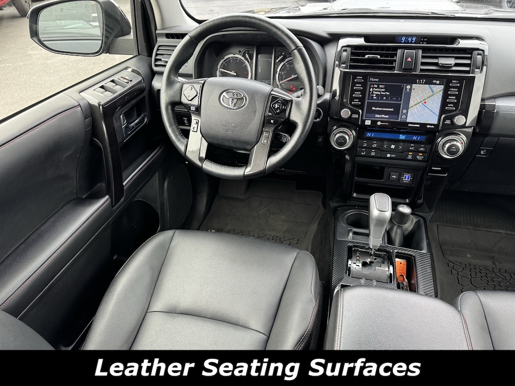 Recent Arrival! 4WD.4WD, 15 Speakers, 3.727 Axle Ratio, 4-Wheel Disc Brakes, ABS brakes, Air Conditioning, Alloy wheels, AM/FM radio: SiriusXM, Anti-whiplash front head restraints, Apple CarPlay/Android Auto, Auto High-beam Headlights, Auto-dimming Rear-View mirror, Automatic temperature control, Black Lug Nuts, Brake assist, Bumpers: body-color, Compass, Driver door bin, Driver vanity mirror, Dual front impact airbags, Dual front side impact airbags, Dual Zone Auto Climate Control, Electronic Stability Control, Emergency communication system: Safety Connect (1-year trial), Exterior Parking Camera Rear, Fog Lights, Fox Shocks, Front anti-roll bar, Front Bucket Seats, Front Center Armrest, Front dual zone A/C, Front fog lights, Front reading lights, Front wheel independent suspension, Garage Door Opener, Garage door transmitter: HomeLink, Heated door mirrors, Heated Front Bucket Seats, Heated front seats, Heated Outside Rear-View Mirrors, Heated steering wheel, Illuminated entry, Knee airbag, Leather Shift Knob, Low tire pressure warning, Moonroof w/Tilt Up & Slide, Multi-Terrain Back Monitor, Navigation System, Occupant sensing airbag, Outside temperature display, Overhead airbag, Overhead console, Panic alarm, Passenger door bin, Passenger vanity mirror, Power door mirrors, Power driver seat, Power moonroof, Power passenger seat, Power steering, Power windows, Radio: Premium Audio w/JBL, Rear anti-roll bar, Rear seat center armrest, Rear window defroster, Rear window wiper, Remote keyless entry, Roof rack, Roof Rack, Security system, SofTex Seat Trim, Speed control, Speed-sensing steering, Split folding rear seat, Spoiler, Steering wheel mounted audio controls, Tachometer, Telescoping steering wheel, Tilt steering wheel, Traction control, TRD Pro All Weather Floor Liner, TRD Pro Badging, TRD Pro Exhaust, TRD Shift Knob, Trip computer, Variably intermittent wipers, Wheel Locks, and Wheels: 17 Matte Black Flow-Formed TRD Alloy.