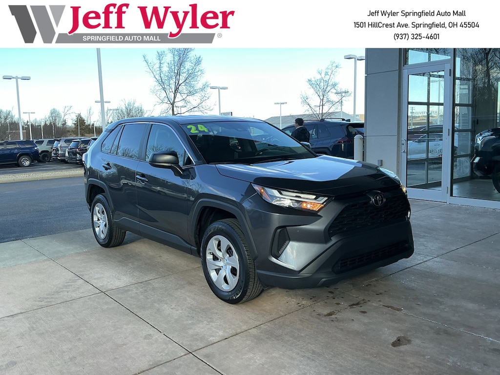 Jeff Wyler Springfield Auto Mall is excited to offer this good-looking 2024 Toyota RAV4 LE in . Well equipped with: 17" Steel Wheels, 4-Wheel Disc Brakes, 6 Speakers, ABS brakes, Air Conditioning, AM/FM radio: SiriusXM, Auto High-beam Headlights, Axle Ratio: 3.177, Brake assist, Bumpers: body-color, Driver door bin, Driver vanity mirror, Dual front impact airbags, Dual front side impact airbags, Electronic Stability Control, Emergency communication system: Safety Connect (10-year trial), Exterior Parking Camera Rear, Fabric Seat Trim, Four wheel independent suspension, Front anti-roll bar, Front Bucket Seats, Front Center Armrest, Front reading lights, Illuminated entry, Knee airbag, Low tire pressure warning, Occupant sensing airbag, Outside temperature display, Overhead airbag, Overhead console, Panic alarm, Passenger door bin, Passenger vanity mirror, Power door mirrors, Power steering, Power windows, Radio data system, Radio: AM/FM/XM Audio System, Rear anti-roll bar, Rear seat center armrest, Rear window defroster, Rear window wiper, Remote keyless entry, Speed control, Speed-sensing steering, Split folding rear seat, Spoiler, Steering wheel mounted audio controls, Tachometer, Telescoping steering wheel, Tilt steering wheel, Traction control, and Trip computer. Ask about available certifications. Used vehicles 10 years of age or newer with less than 100,000 miles are eligible for the Wyler Assurance Program, but eligible vehicles must pass our reconditioning process and multi-point inspection. Provided the vehicle passes inspection, vehicles will be eligible for the 6 month/6,000 mile limited warranty. The 6 month/6,000 mile limited warranty is NOT available on AS-IS vehicles, wholesale vehicles, lease buyback/pass-thru vehicles or un-inspected vehicles. Note that this program can also apply to vehicles where the remaining factory coverage is less than 6 months or 6,000 miles. Please check the Federal Trade Commission (FTC) Buyers guide on the vehicle for full details as to whether or not warranty coverage may apply. Contact Dealer for additional details. The Wyler Assurance 6 month/6,000 Mile limited warranty ends 6 months from the date of the Retail Purchase Agreement (BUYERS ORDER) or when the vehicle's odometer registers 6,000 additional miles to the mileage listed on the BUYERS ORDER, whichever comes first. Your Deductible - The warranty holder on your contract pays the first $100 of each covered repair.